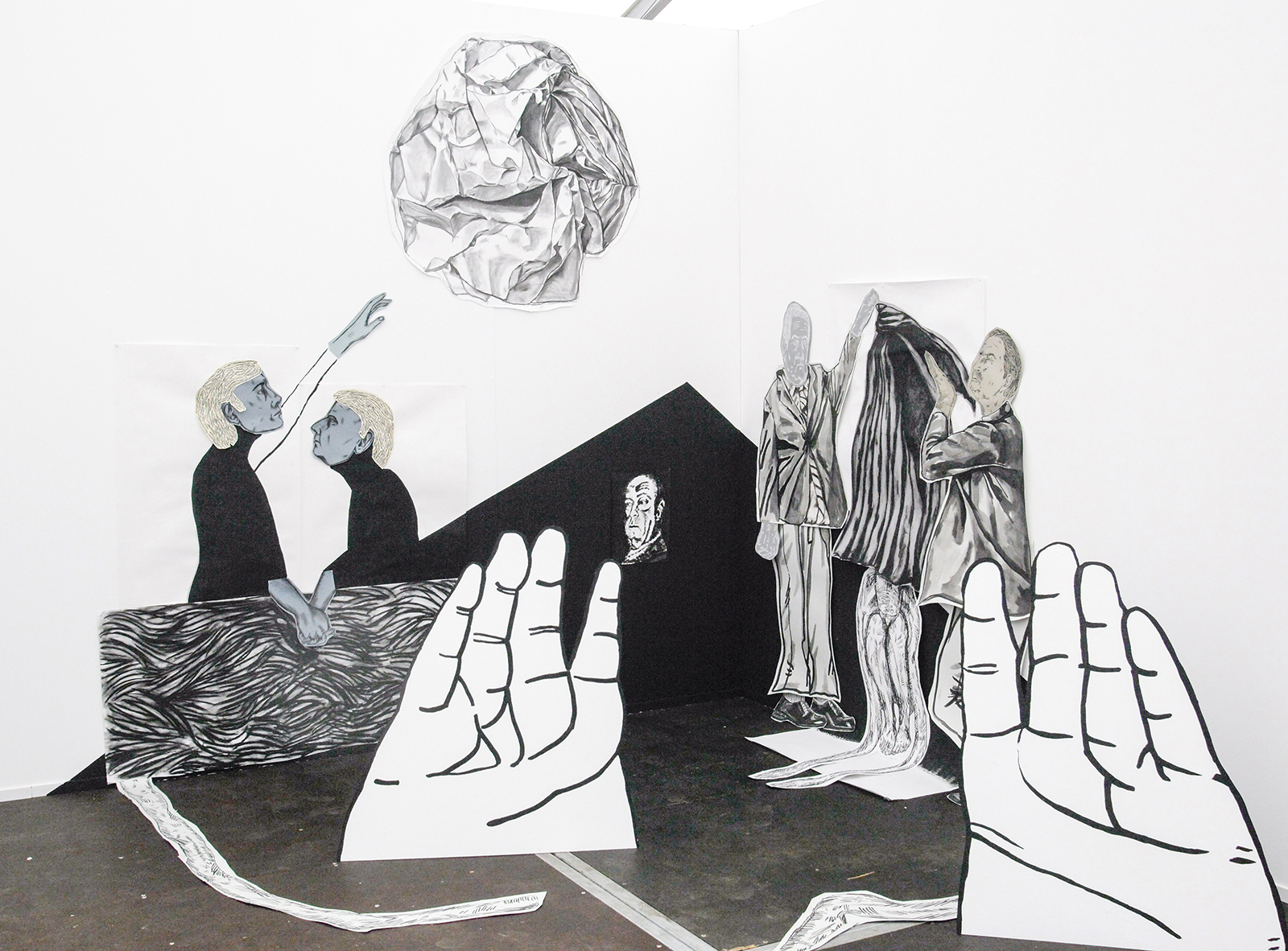 Maar, ook dit jaar hebben een aantal galeries weer afgehaakt en zijn die plaatsen ingenomen door wat minder bekende galeries, en daar begint het te wringen. Een beurs met te veel generieke stands wordt saai en vanwege de criteria (de beurs heet niet voor niets Amsterdam Drawing, je ziet vooral tekeningen) en de intimiteit wordt dat generieke al snel versterkt. Er is te weinig prikkelend werk, en dan laat al snel de helft van de beursvloer je helemaal koud.