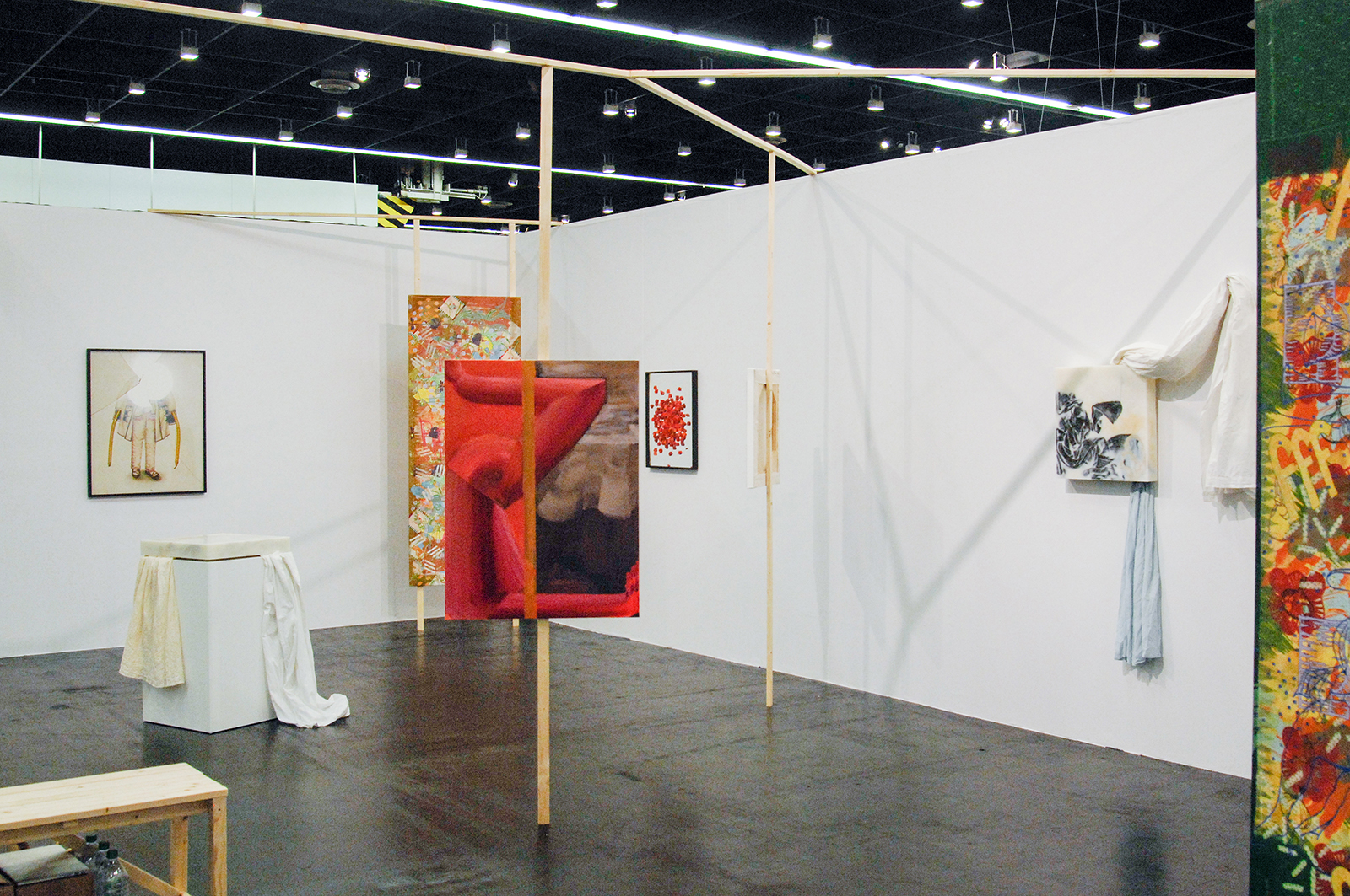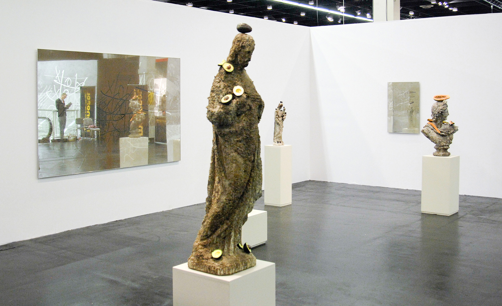 Wat ook opvalt bij de bovenste verdieping zijn de galeries die samen met een andere galerie de stand vullen. In een aantal gevallen is er gekozen voor een opmerkelijke samenwerking, een grote groepspresentatie. Maar soms ook een solo van een kunstenaar die bij twee verschillende galeries zit. Het is niet bepaald heel erg praktisch voor navraag om meer informatie (want dan heb je weer net de verkeerde aangesproken), maar het levert wel in veel gevallen spannende presentaties op.