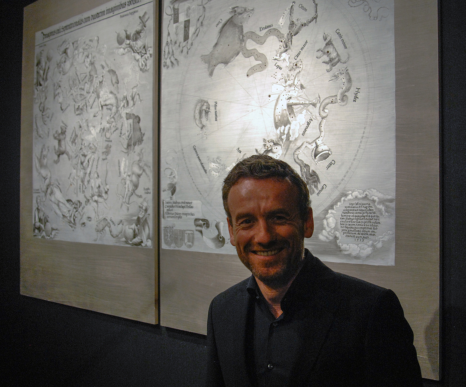Niek Hendrix – Celestial (Fifteen Fifteen) – 325x120cm, tweeluik, Olieverf en potlood op panelen (met Axel Rüger op de voorgrond)