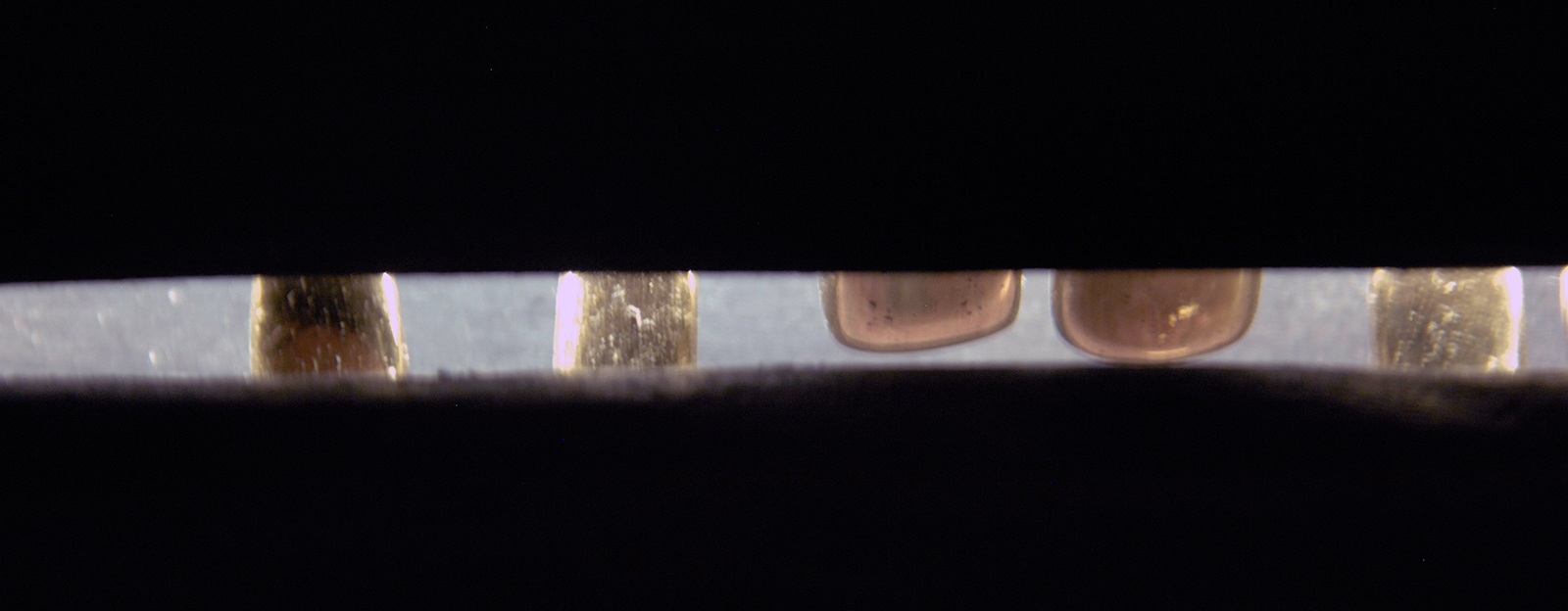 Paul de Reus – Gouden Tanden – 19x11x158cm Hout, brons en lamp (detail)