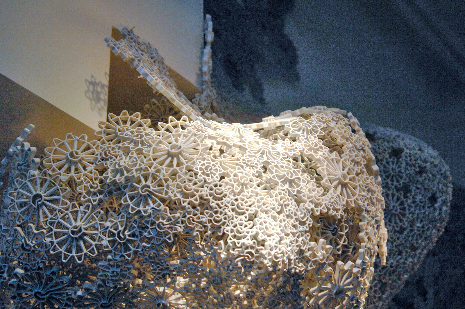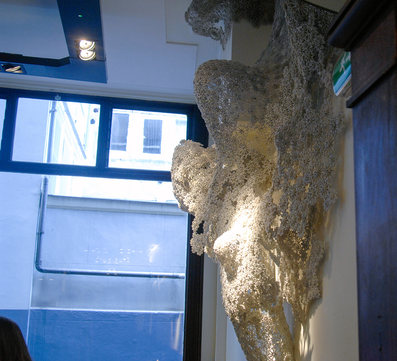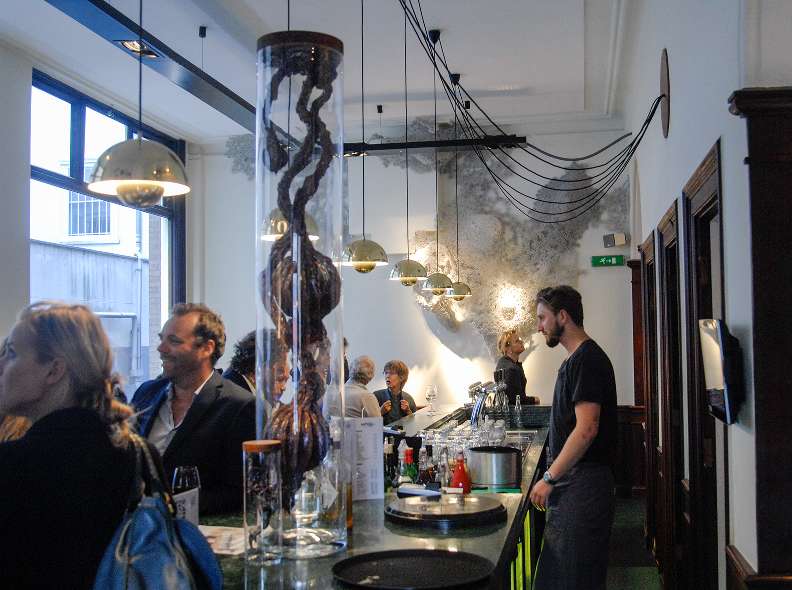 Deze tentoonstelling spreekt me niet zo aan, maar kunst in een restaurant vind ik zeker kunnen en mag je ook best serieus nemen. (Toen ik nog maar pas studeerde heb ik ooit wel eens iets anders beweerd, maar wijsheid komt met de jaren zullen we maar zeggen.) Het is toch een verworvenheid van de hedendaagse kunst dat ze hybride is en op allerlei plekken kan opduiken zonder plat te worden (als het een goed werk is).