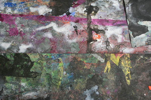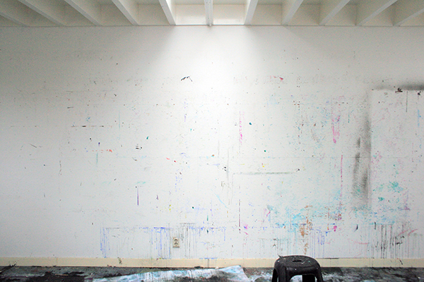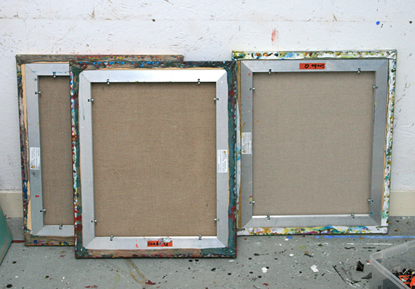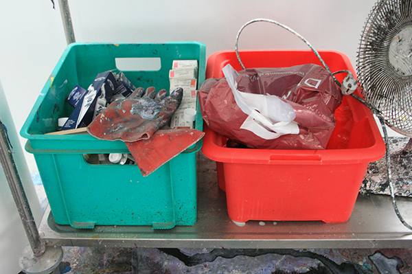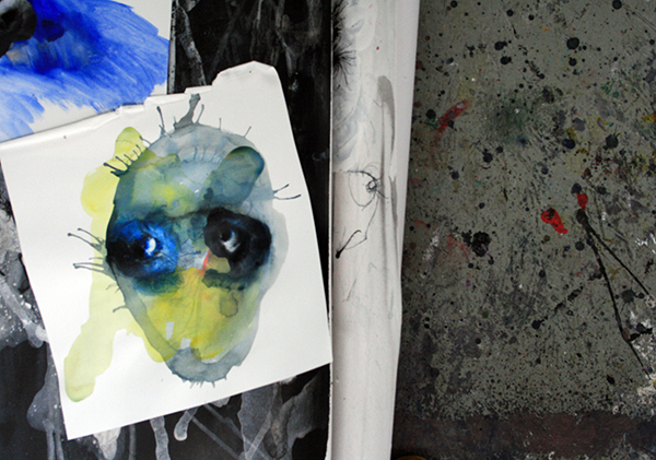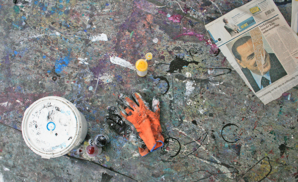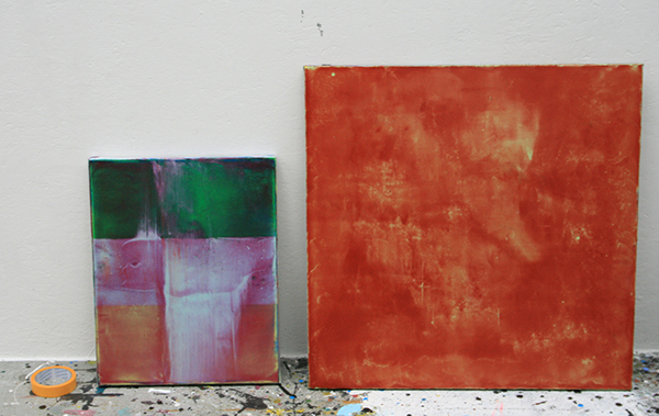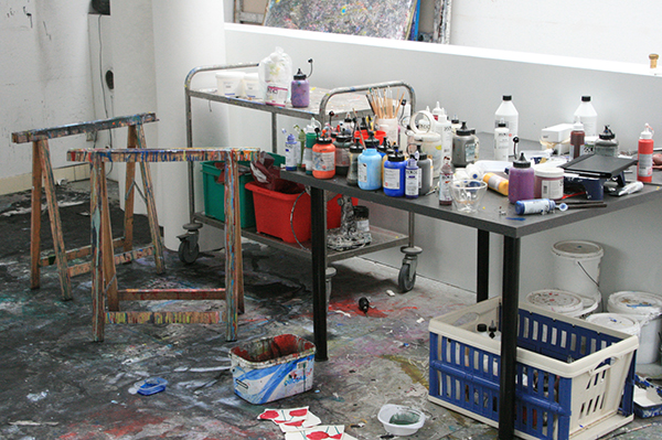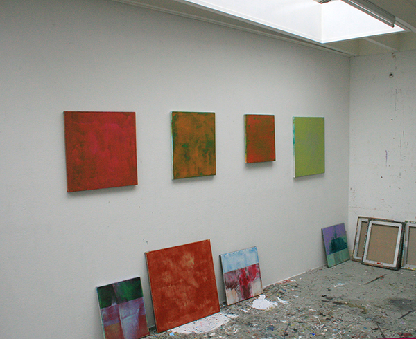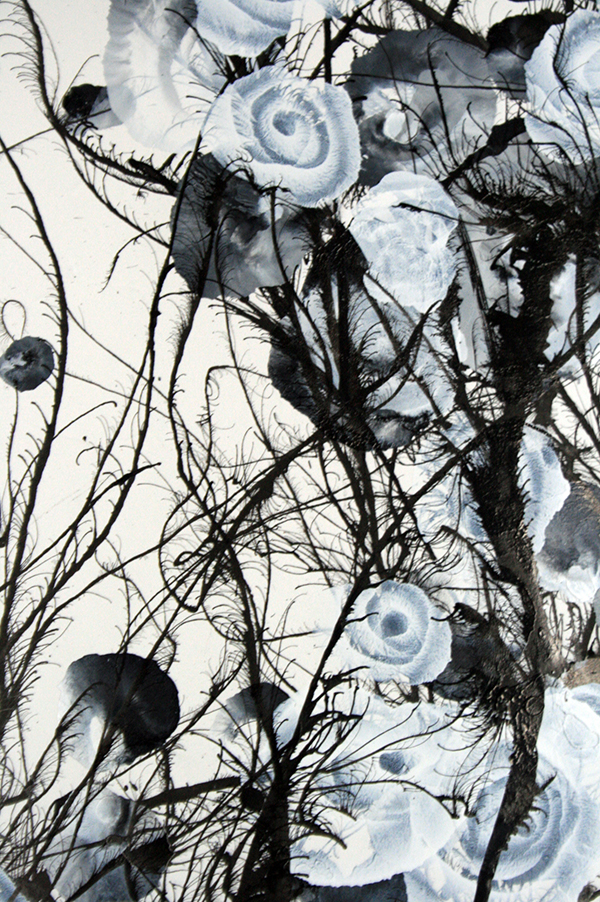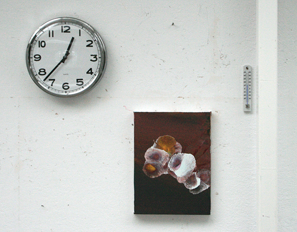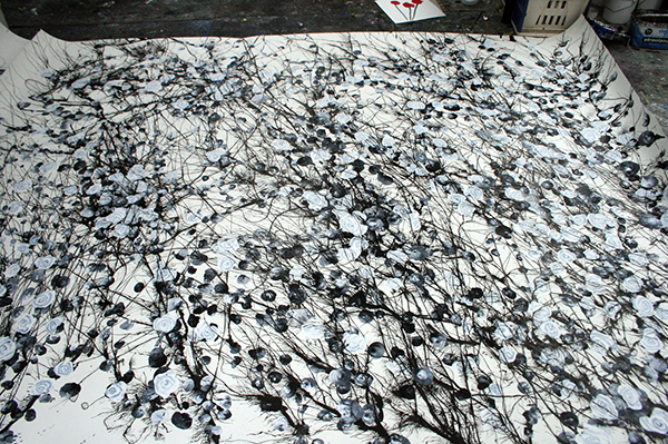Reinoud van Vught (1960) is bekend als een van de kunstenaars van de Tilburgse School. Zijn werk grijpt terug op elementen uit de natuur. Soms heel letterlijk, soms op een veel abstracter niveau. Op het moment dat ik deze keer er was was hij zowel bezig met bloemen van inkt op papier en ondertussen stonden in de andere hoek monochromen te drogen van acrylverf. Bij Van Vught kan dat alles door elkaar, naast elkaar en tegelijk.