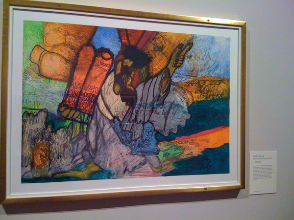 Begin oktober opende in het Bijbels Museum de tentoonstelling Wonder boven Wonder. Het museum is gehuisvest in de imposante monumentale Cromhouthuizen (uit 1662) aan de Herengracht. De tentoonstelling toont werken rond het thema Bijbelverhalen. De kunstenaars hebben verschillende verhalen verbeeld. Ruim 100 werken zijn te zien. Bij de tentoonstelling wordt ook een docusoap over de aanloop naar de tentoonstelling vertoond. Dit geeft een mooi beeld van de kunstenaars. Ook presenteert elke kunstenaar zich met een “biografie-kistje”. Een persoonlijk favoriet is Piet Schopping. Maar ook het werk van Moniek van Deventer (met aangrijpende flarden tekst) en Caroline Sterkman spreken me erg aan.