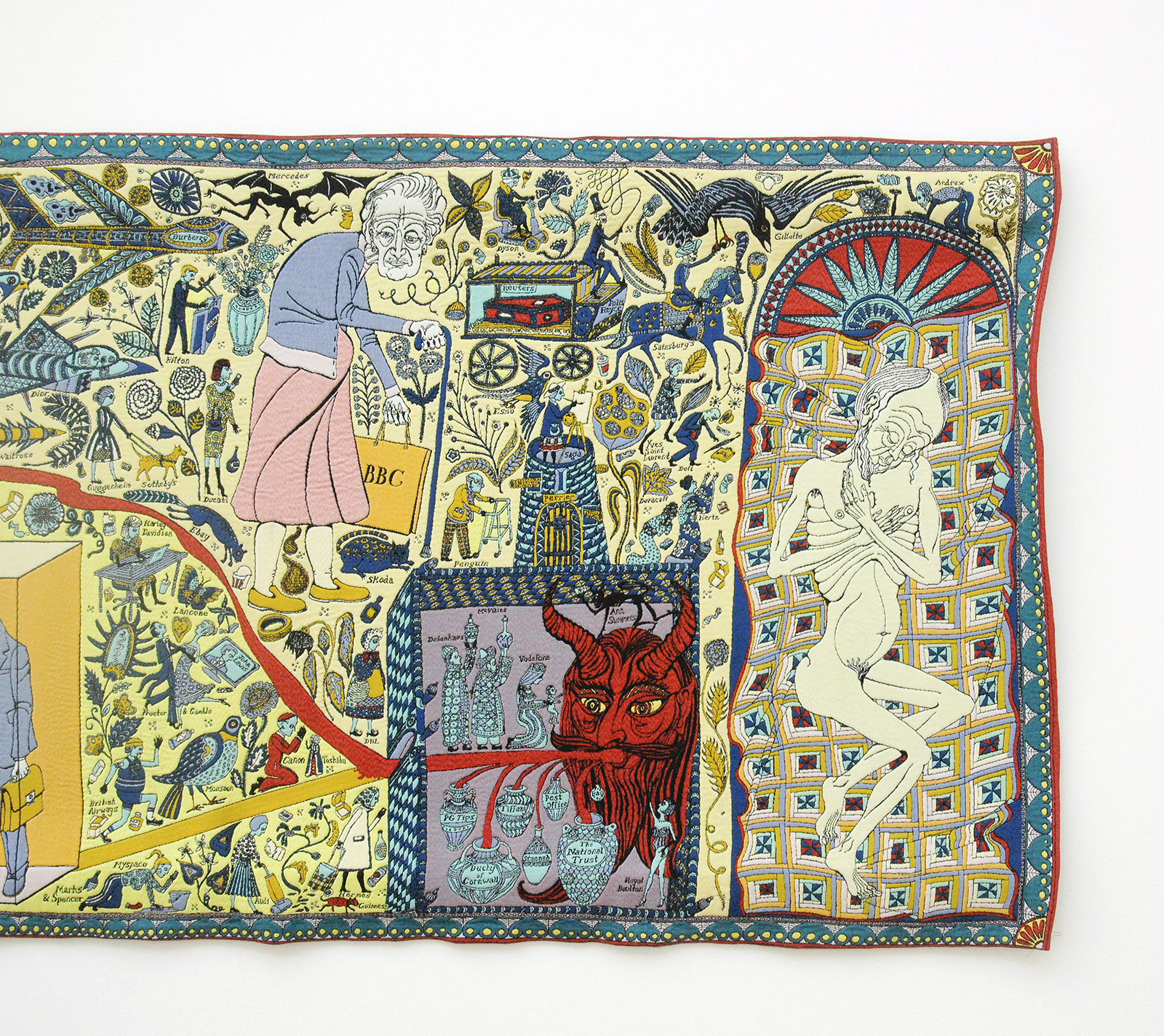 Grayson Perry – Walthamstow Tapestry – Geweven wol, acryl, katoen, trevira cs en polyster, oplage 11 van 12, 2009 (detail)
