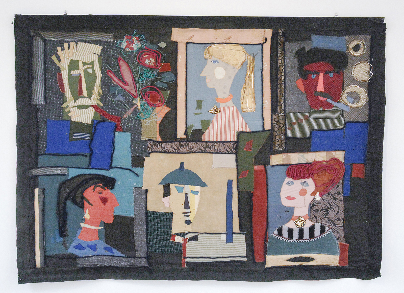 Marijke Stultiens – Applicatiedoek met portretten van kunstenaarsechtparen – Textiel, 1958