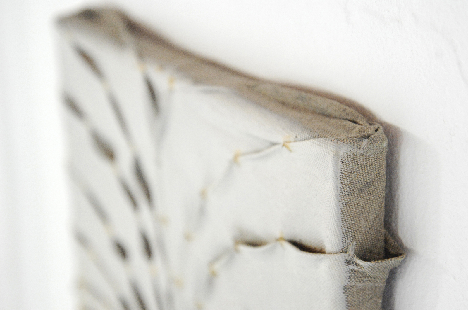 Antoniette Peeters – 2014 (3-5-14) – 24x24cm Acrylverf op gestikt linnen met fiberfill en katoen (detail)