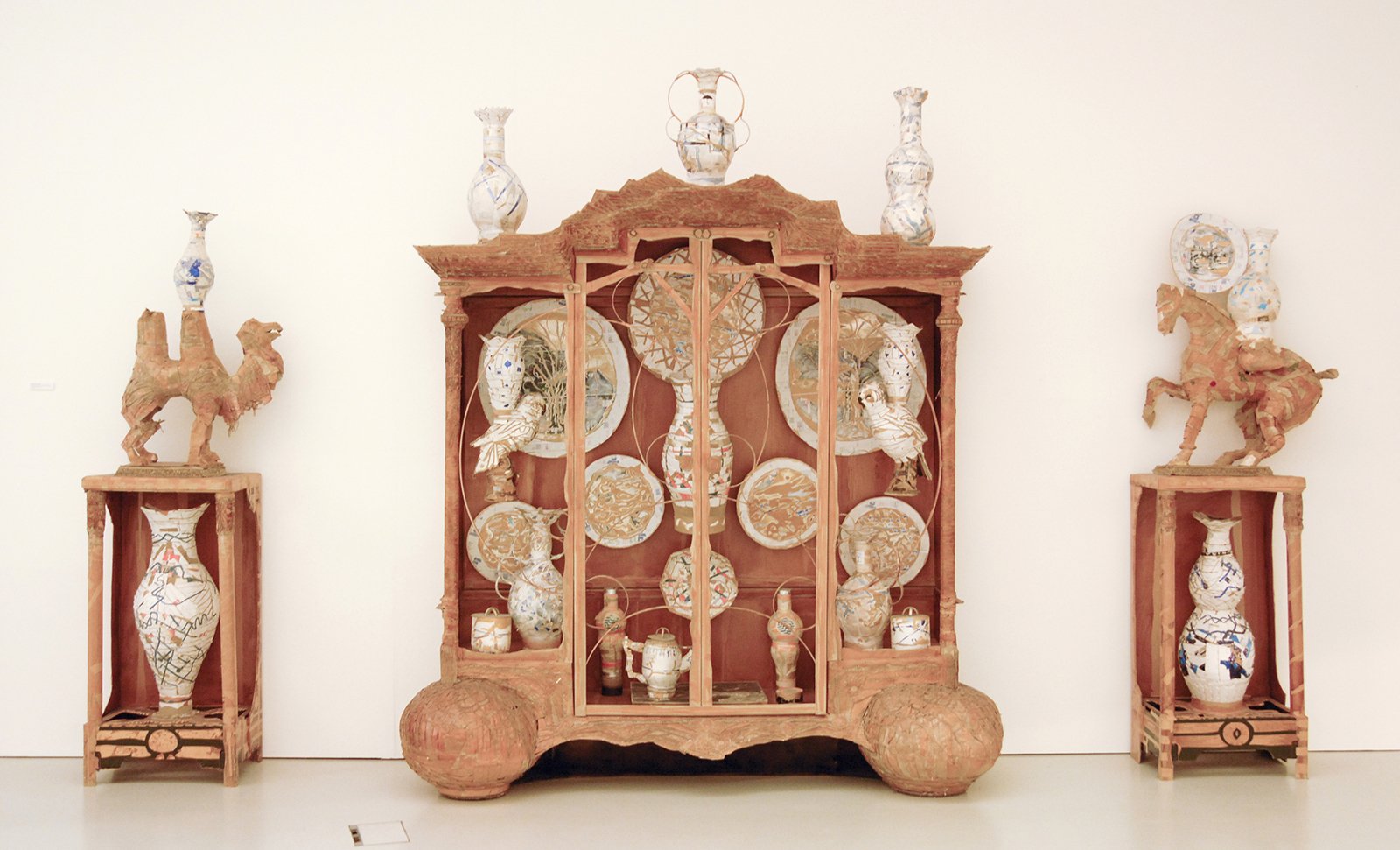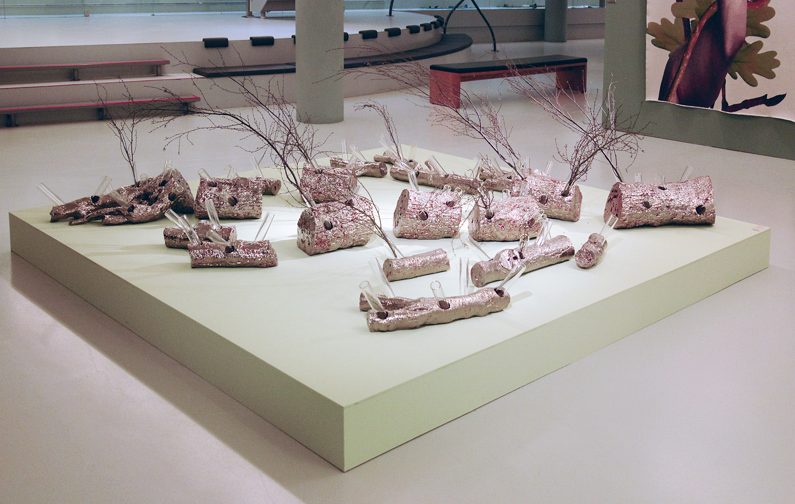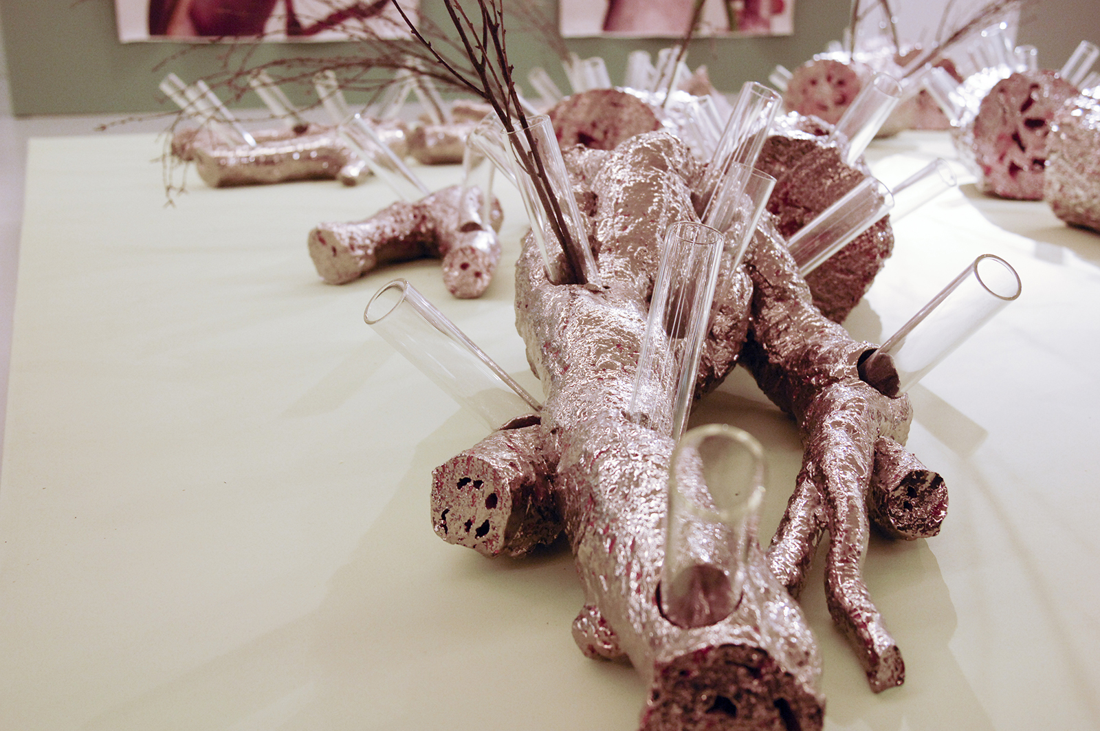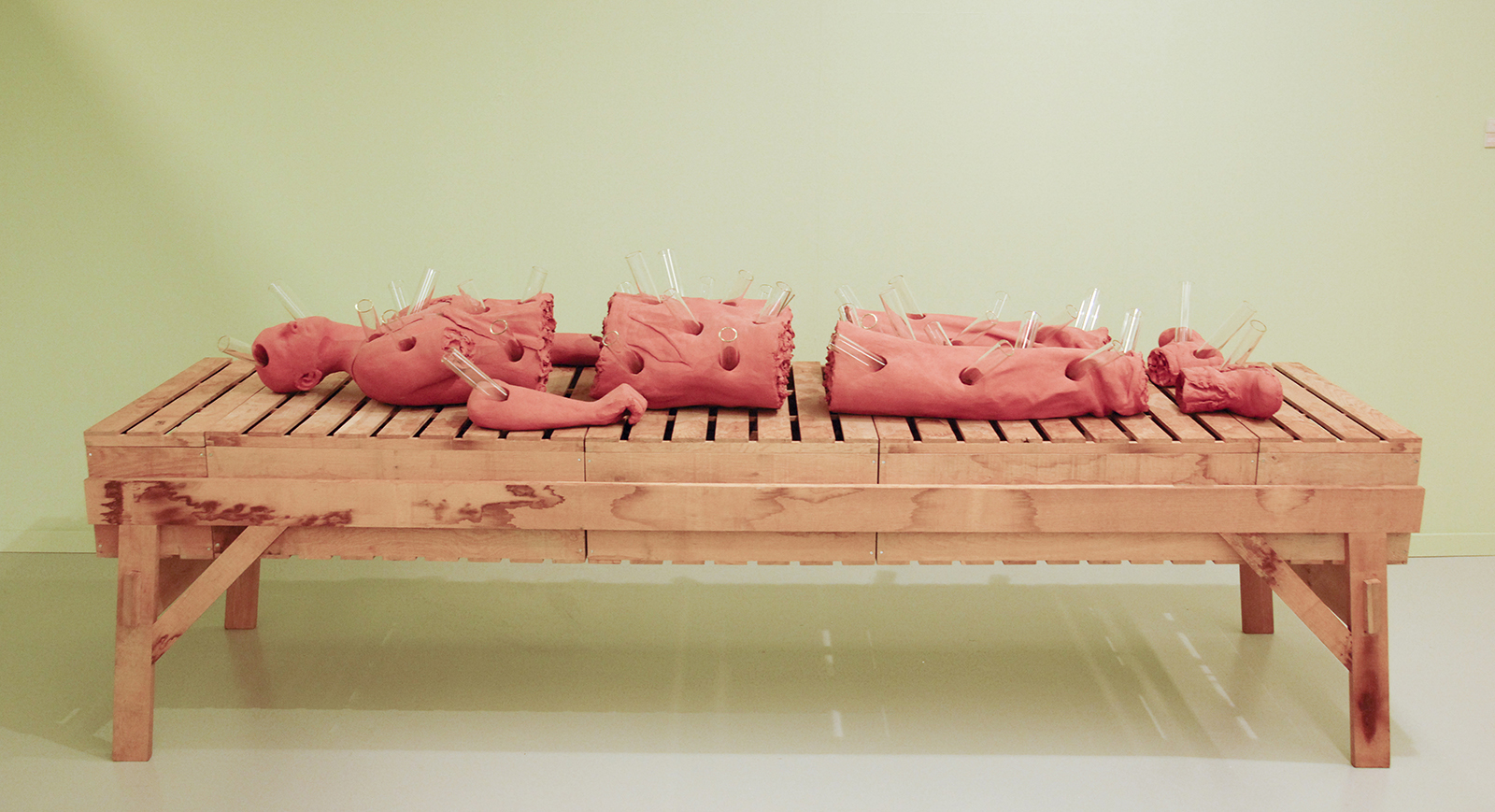 Guido Geelen – Anatomische Les – Klei, glas verse bloemen (die dus ontbreken), baar van Piet Hein Eek