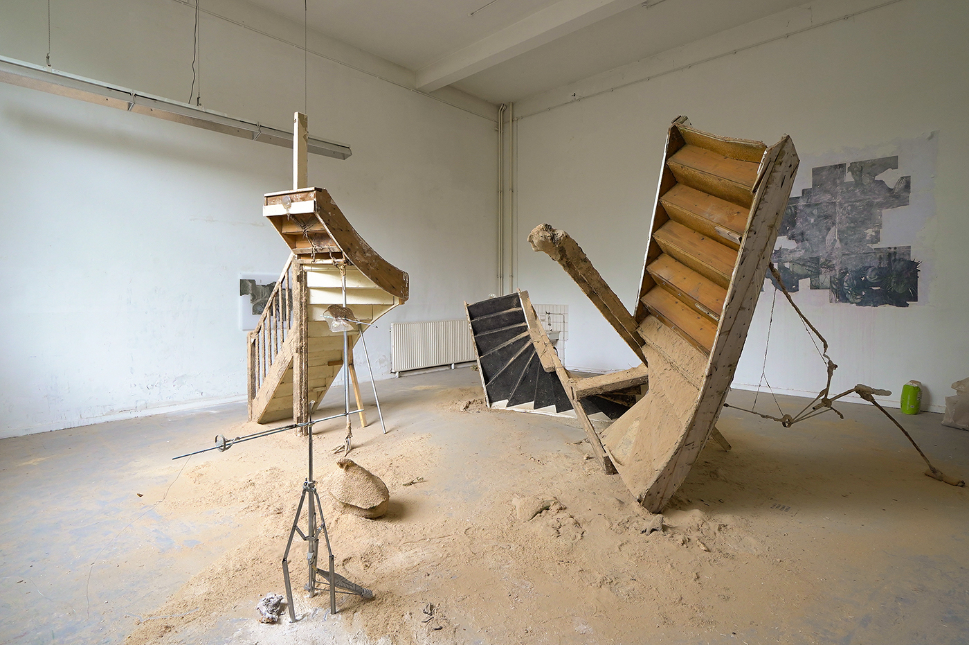 Maar dit jaar is het anders. Wat opvalt, zijn de grote statements. Denk hierbij aan de voerinstallatie van Bart Houwers, de twee monolithische sculpturen van Klaartje van Essen, de videoinstallatie van Leah Zhang of de trappen van Felix Keslassy. Stuk voor stuk stevige werken met gevoel voor aandacht en precisie. De concentratie die in die installaties zit, is vergelijkbaar met elkaar; een groot gebaar zonder dat het macho wordt. Zelfs de meer bescheiden presentaties, zoals die van Neda Mirhosseini en Anthony Ngoya, passen er heel goed bij. Hoewel die twee presentaties bestaan uit veel meer verschillende soorten werk, is het grote verhaal van hun werk helder naar de voorgrond verschoven. Niet omdat het werk zo expliciet is, maar omdat er duidelijk is nagedacht over de ruimte als geheel. Het kan haast niet anders dan dat deze lichting kunstenaars als groep regelmatig met elkaar in gesprek is geweest. Iets wat bij andere lichtingen veel minder invoelbaar is geweest.