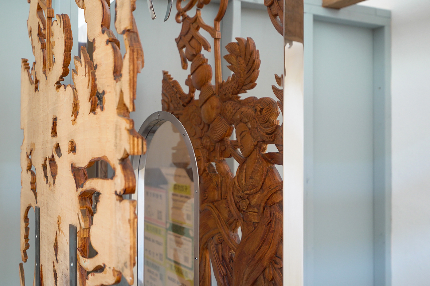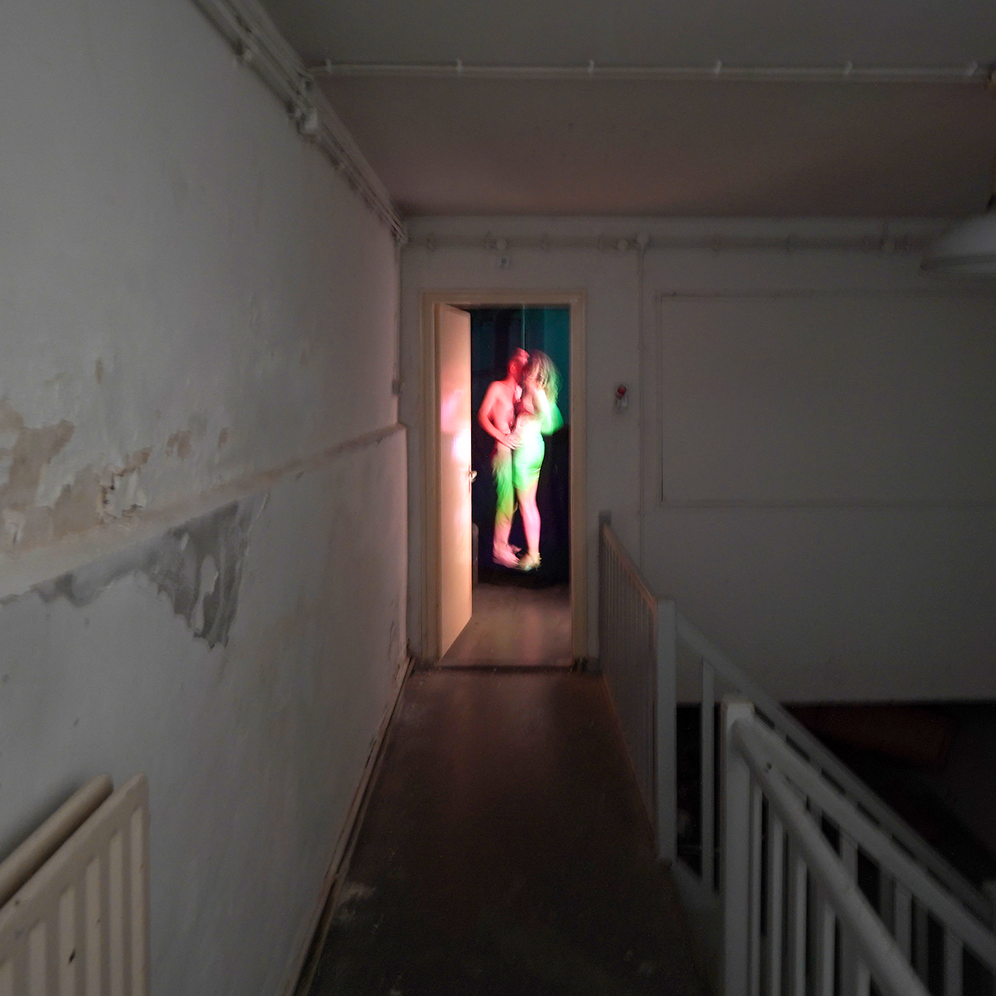 Het grote verschil met andere edities van Offspring is dat je zowel via de traditionele ingang naar binnen kunt als via de zij-ingang bij het woonhuis. De traditionele ingang is institutioneel en begint met de grote museale ruimtes met dito installaties. De zij-ingang leidt je naar het voormalige woonhuis, waar kamers de schaal direct en persoonlijk maken, met onder andere portretten van collega-deelnemers en tutoren door Lorian Gwynn. Het verschil tussen de ingangen is een klein nuanceverschil, maar wel een met invloed op de ervaring: van een persoonlijke leefwereld naar een institutionele.