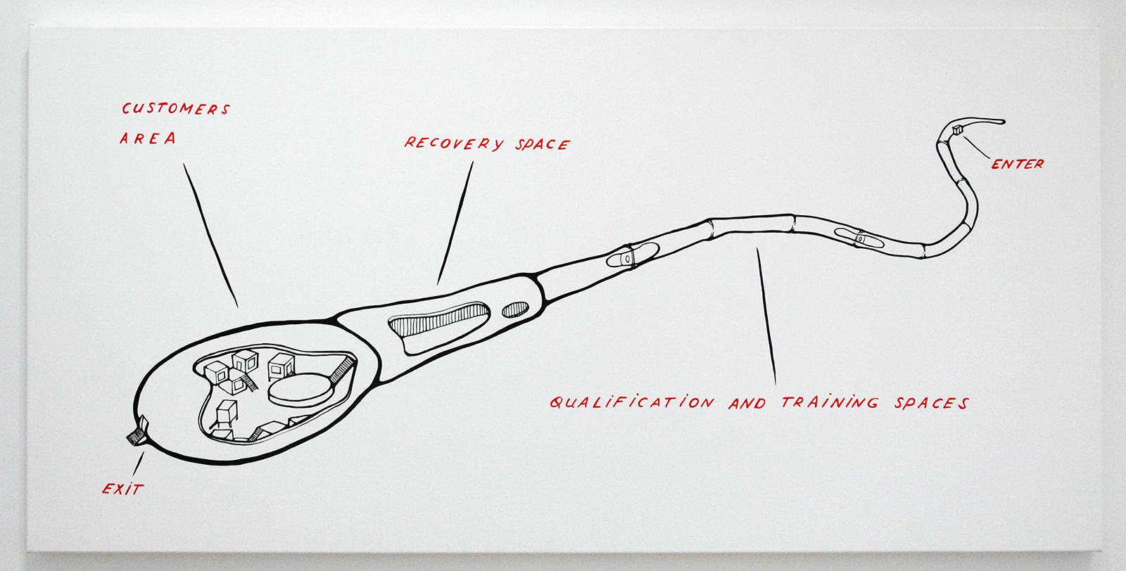 Atelier van Lieshout – SlaveCity, Business plan – Inkt op doek (detail)