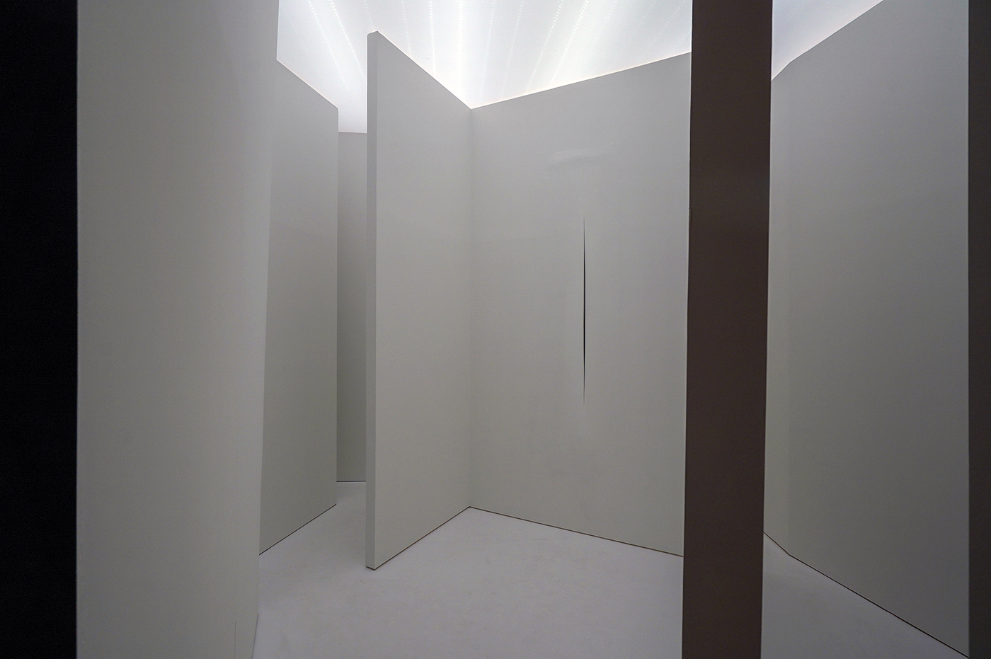 Een rode draad in het oeuvre van Fontana is niet zo zeer de gewelddadige actie van het snijden in het doek, maar juist steeds weer opnieuw het benadrukken van de fysieke ruimtelijkheid van het object en de relatie tot de toeschouwer. Een goed voorbeeld is werk bestaande uit een messing plaat met flinke gaten. Niet alleen kijk je door het werk heen naar de muur, ook zie je jezelf terug in de reflectie van de messing plaat. Een grote kras in het goudgele materiaal rondom de gaten benadrukt nog eens het materiaal. De ruimtelijke installaties laten even zo zeer zien hoe ruimtelijk het is. In één van zijn installaties heeft hij enkel een knalroze neonbuis nodig om een hele ruimte te bespelen. Niet de neonbuis is boeiend, maar wat dat doet met je perceptie en ervaring van de ruimte.