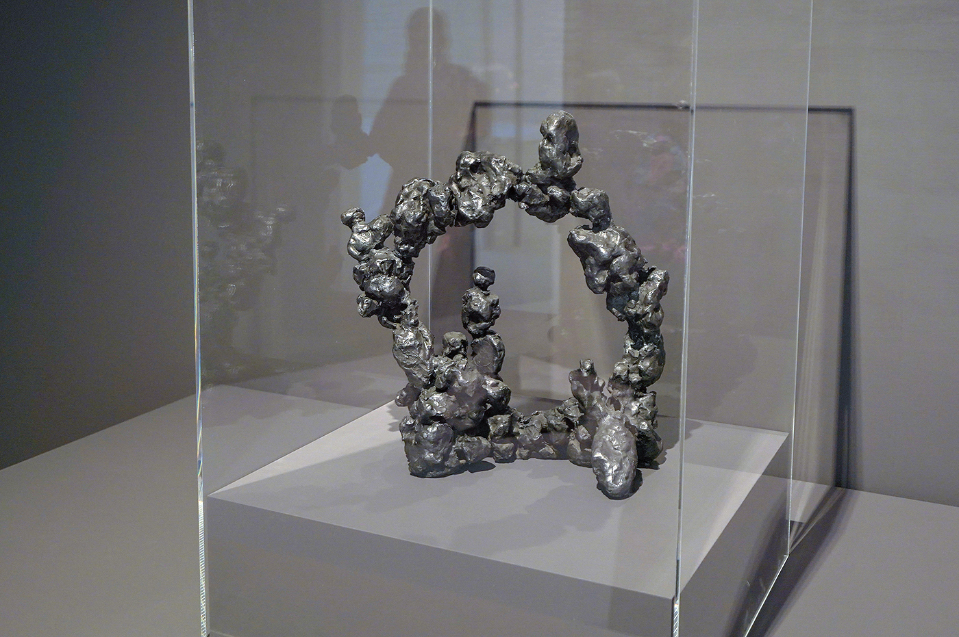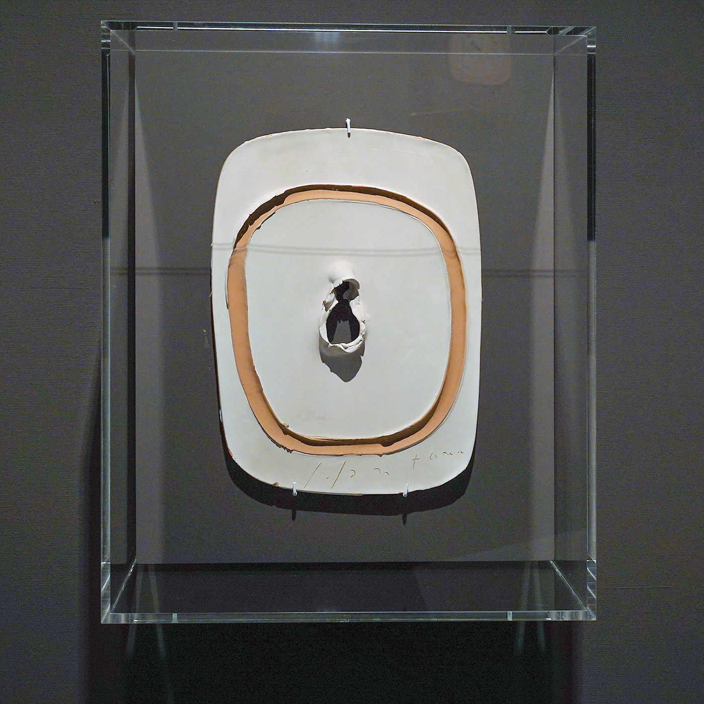 Maar, de gesneden schilderijen zijn een beetje eentonig. Als je er een paar gezien hebt, heb je ze eigenlijk allemaal wel gezien. Min of meer doen ze allemaal hetzelfde. Maar hij maakte ook nog andere dingen. Een groot deel van het oeuvre bestaat namelijk niet uit schilderijen maar uit ruimtelijk werk. Denk hierbij aan relatief klassieke onderwerpen zoals keramische crusefixen of objecten die je zou kunnen herleiden tot schilderkunstige vraagstukken. Maar, ook aan objecten die doen denken aan schalen en kannen. En tenslotte zijn er nog de ruimtelijke installaties. Zijn oeuvre is dus aanzienlijk rijker dan enkel de bekende gesneden doeken.