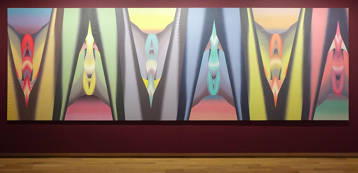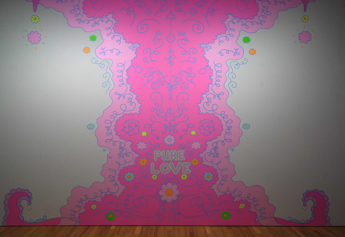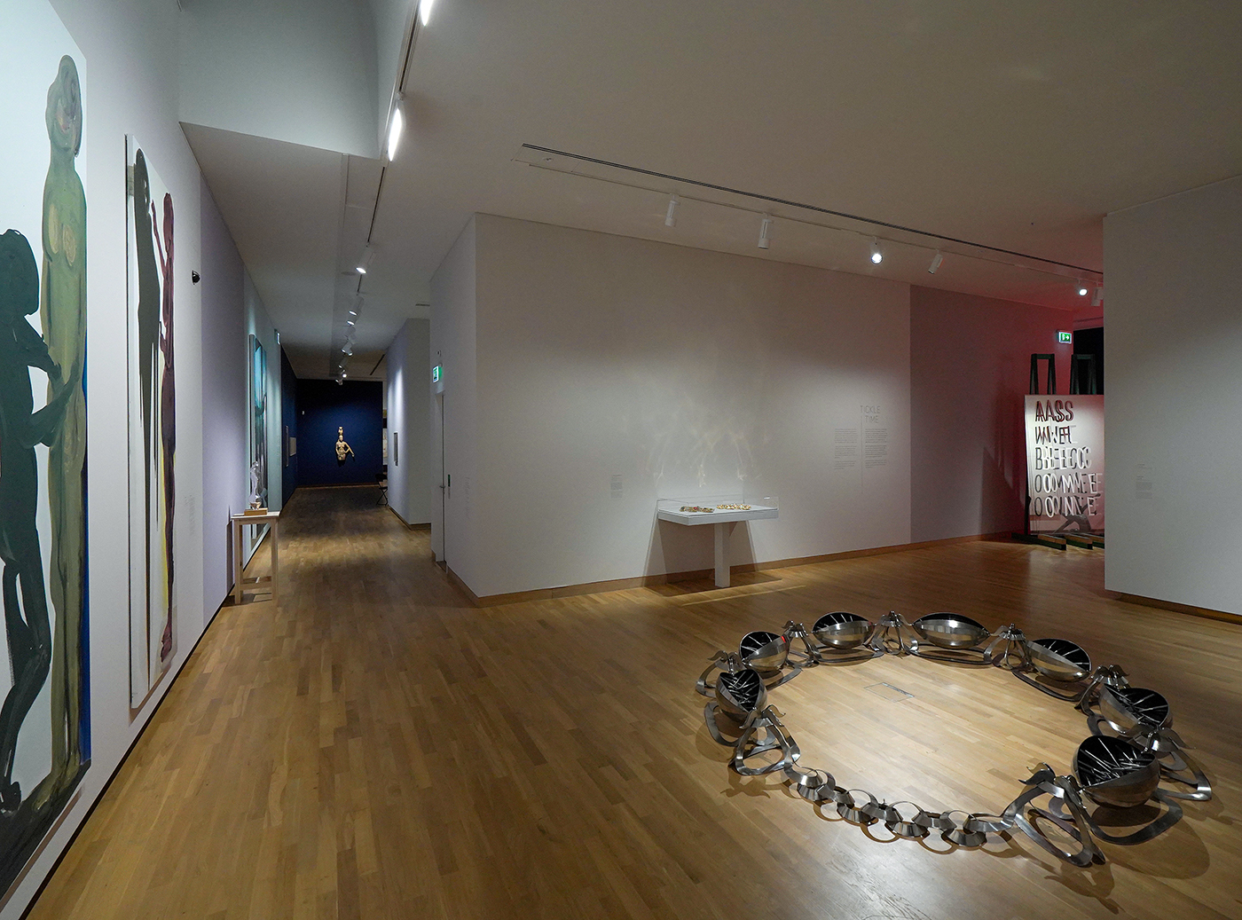 Wat die liefde precies is, kan breed worden opgevat en deze groepstentoonstelling in het Dordrechts Museum gaat dan ook al deze kanten op. Liefde in de romantische zin, de lust, liefde voor je familie, je kind, je lijf, de aarde etc etc. Voor iedereen wel een herkenbare vorm komt aan bod met een diverse selectie werken. Het levert een verrassende reis langs onverwachte combinaties van verschillende kunstenaars langs al die verschillende liefdes. Er zijn genoeg werken die je anders nooit zo bekeken zou hebben, maar in deze context een andere betekenislaag krijgen. Denk hierbij aan het keramieken sculptuur van Juul Kraijer of de werken van Kalliopi Lemos, het enorme schilderwerk van Kensmil. Niet direct werken die je bij het onderwerp liefde zou verwachten. Niet geheel toevallig zijn het dan ook allemaal werken met een duister randje. Maar ook lichter werk zoals dat van Tanja Ritterbex en van Vera Gullikers passen hier er bij terwijl dat ook niet het eerste onderwerp is waar je aan zou denken. De tentoonstellingen toont zo een kleurenwaaier aan mogelijkheden van liefde. En hoewel het allemaal oprecht is, wil dat niet zeggen dat er geen ironie te vinden is. Denk bijvoorbeeld aan de net iets te mierzoete muurschildering van Lily van der Stokker.