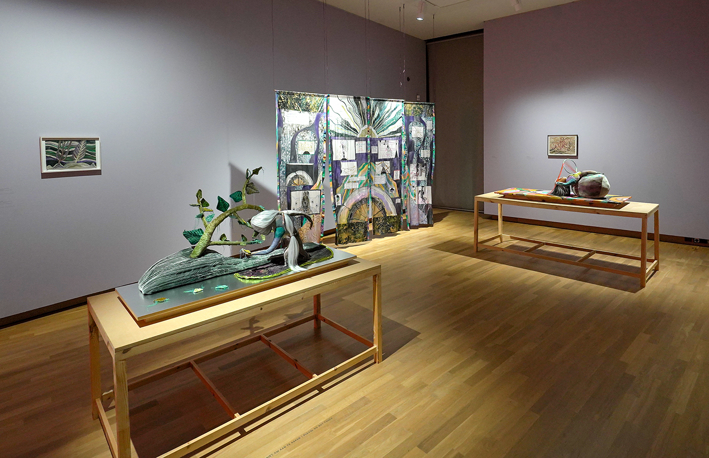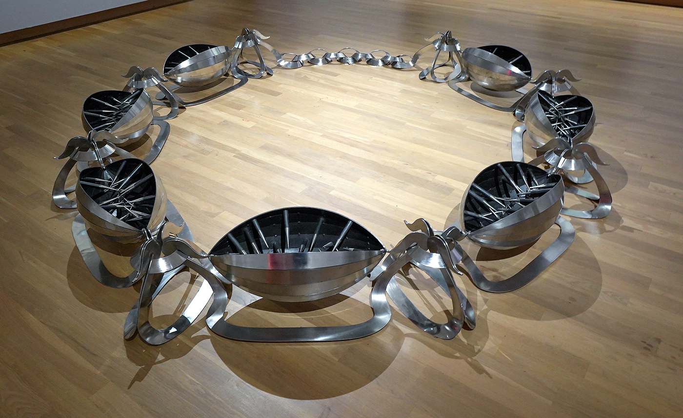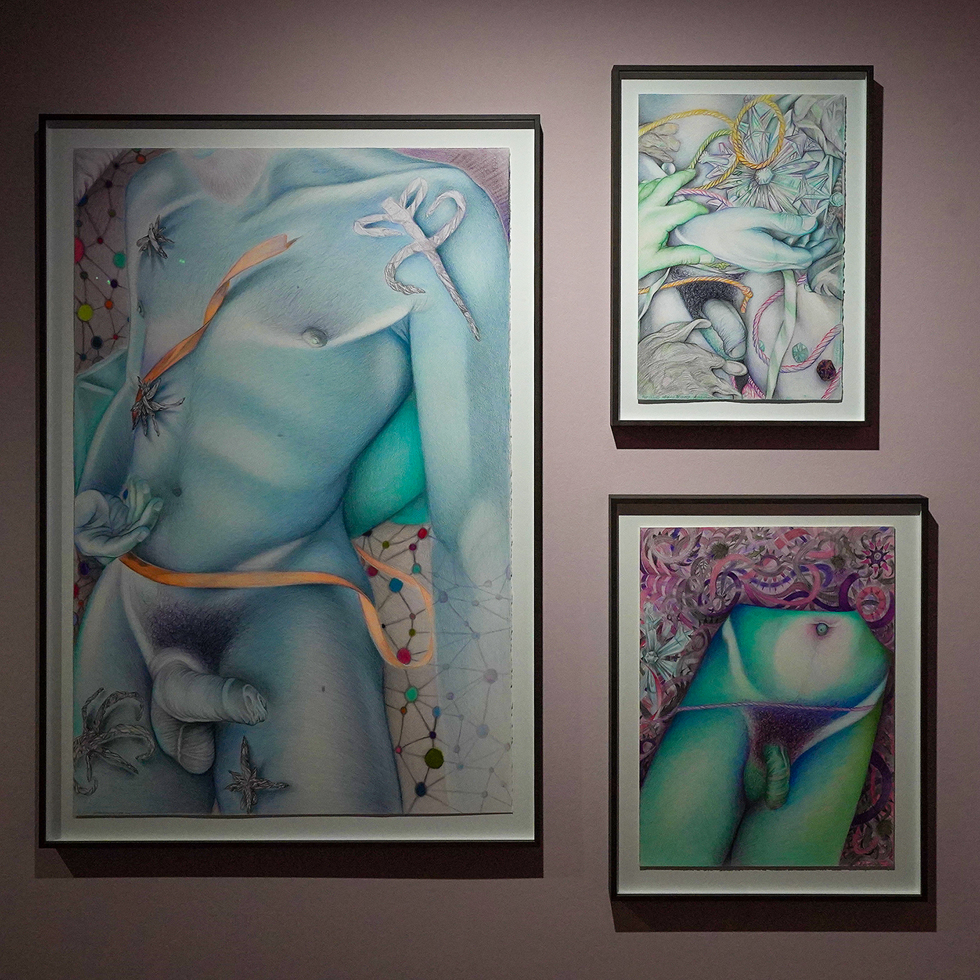 Wat die liefde precies is, kan breed worden opgevat en deze groepstentoonstelling in het Dordrechts Museum gaat dan ook al deze kanten op. Liefde in de romantische zin, de lust, liefde voor je familie, je kind, je lijf, de aarde etc etc. Voor iedereen wel een herkenbare vorm komt aan bod met een diverse selectie werken. Het levert een verrassende reis langs onverwachte combinaties van verschillende kunstenaars langs al die verschillende liefdes. Er zijn genoeg werken die je anders nooit zo bekeken zou hebben, maar in deze context een andere betekenislaag krijgen. Denk hierbij aan het keramieken sculptuur van Juul Kraijer of de werken van Kalliopi Lemos, het enorme schilderwerk van Kensmil. Niet direct werken die je bij het onderwerp liefde zou verwachten. Niet geheel toevallig zijn het dan ook allemaal werken met een duister randje. Maar ook lichter werk zoals dat van Tanja Ritterbex en van Vera Gullikers passen hier er bij terwijl dat ook niet het eerste onderwerp is waar je aan zou denken. De tentoonstellingen toont zo een kleurenwaaier aan mogelijkheden van liefde. En hoewel het allemaal oprecht is, wil dat niet zeggen dat er geen ironie te vinden is. Denk bijvoorbeeld aan de net iets te mierzoete muurschildering van Lily van der Stokker.