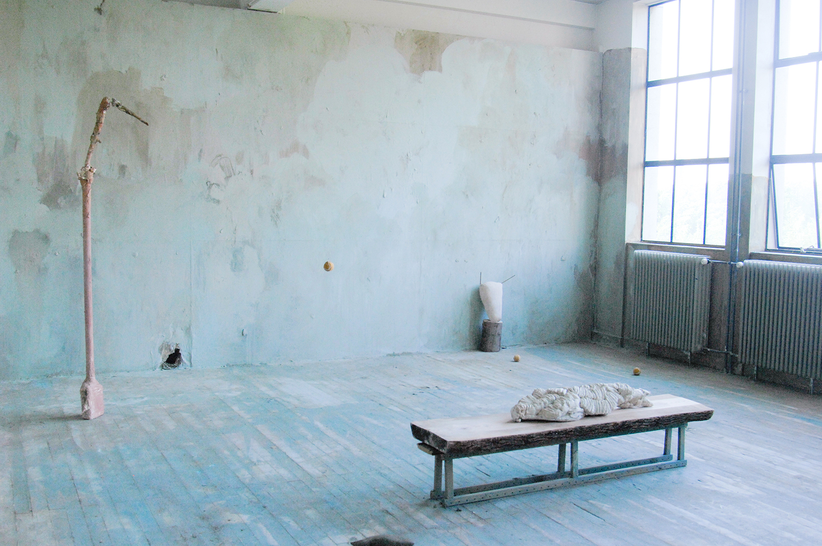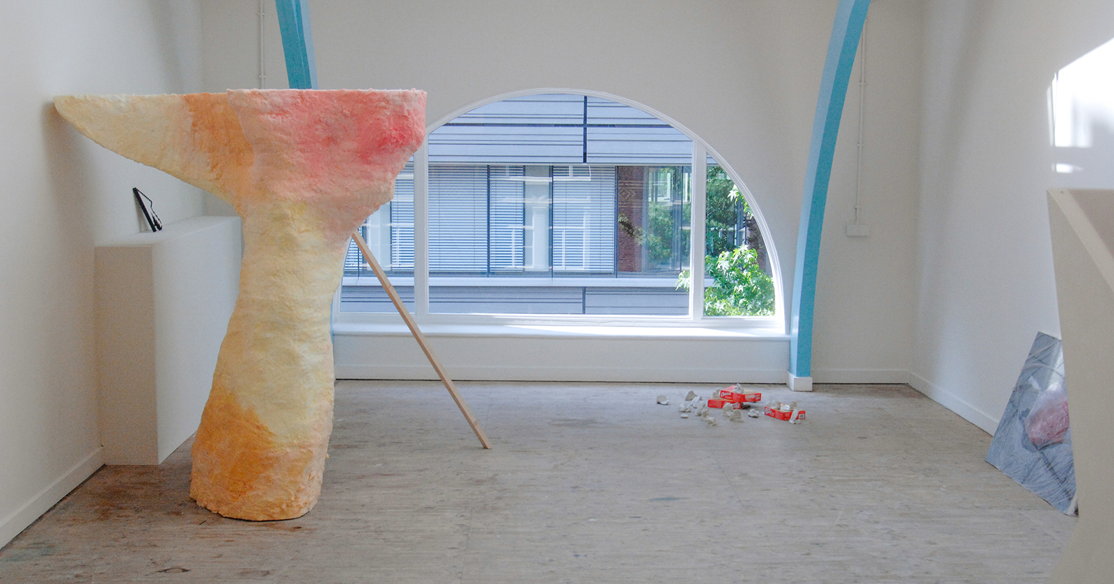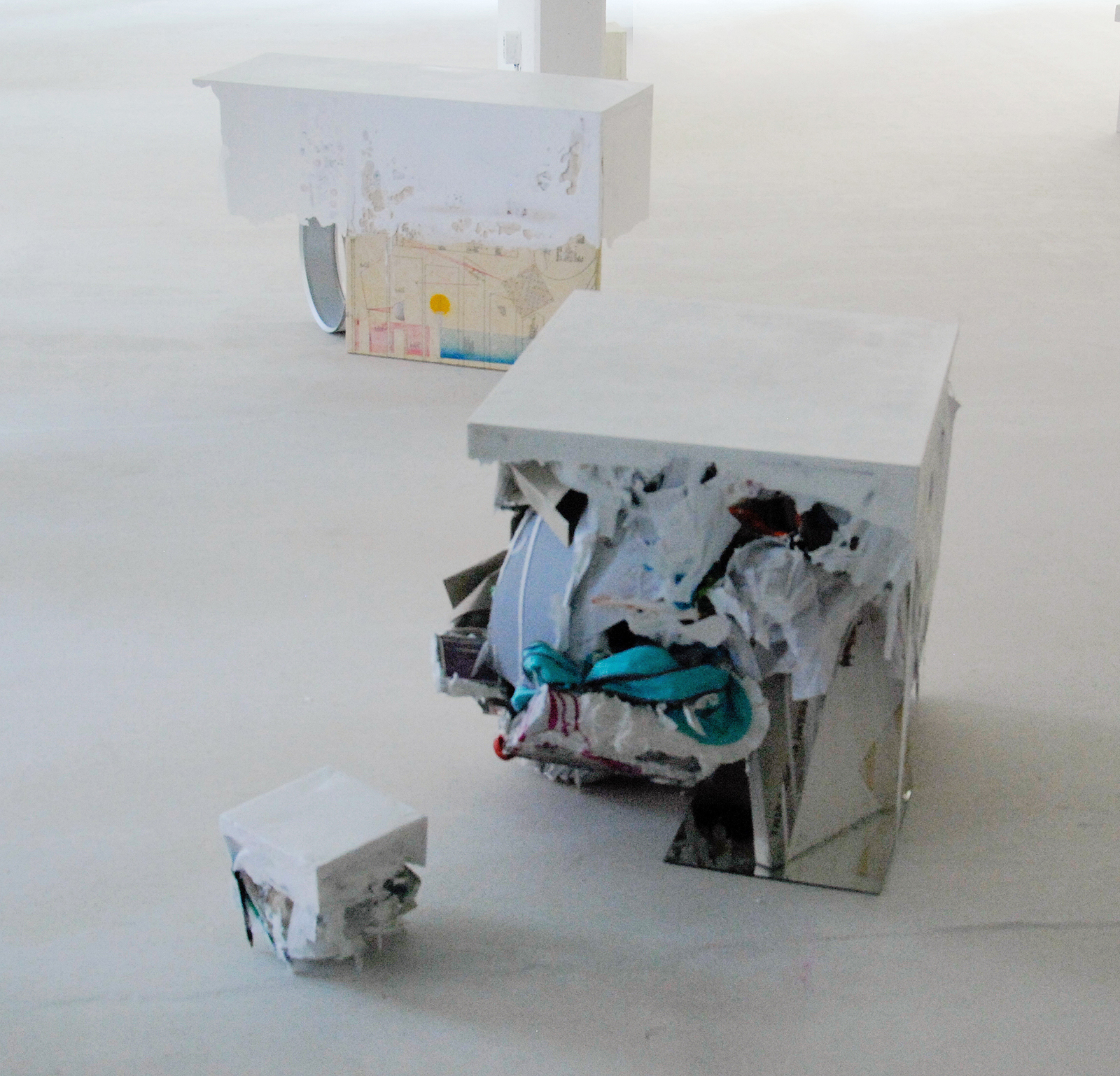 Bjorn Barendse toont een bizarre kleine installatie met schilderelementen. Ook daar blijft op foto bar weinig van over.