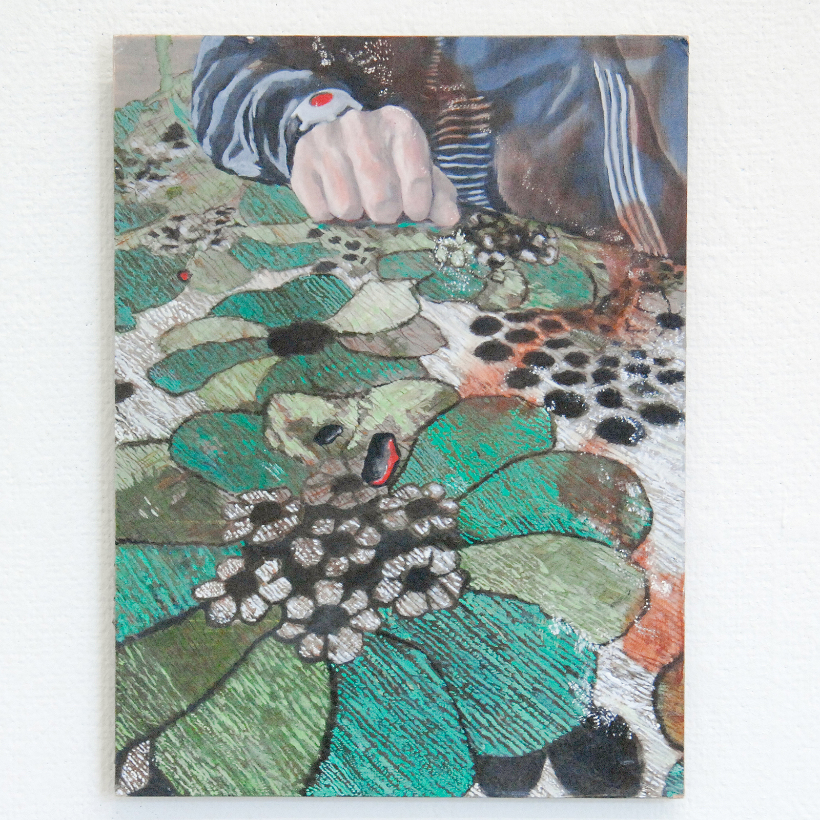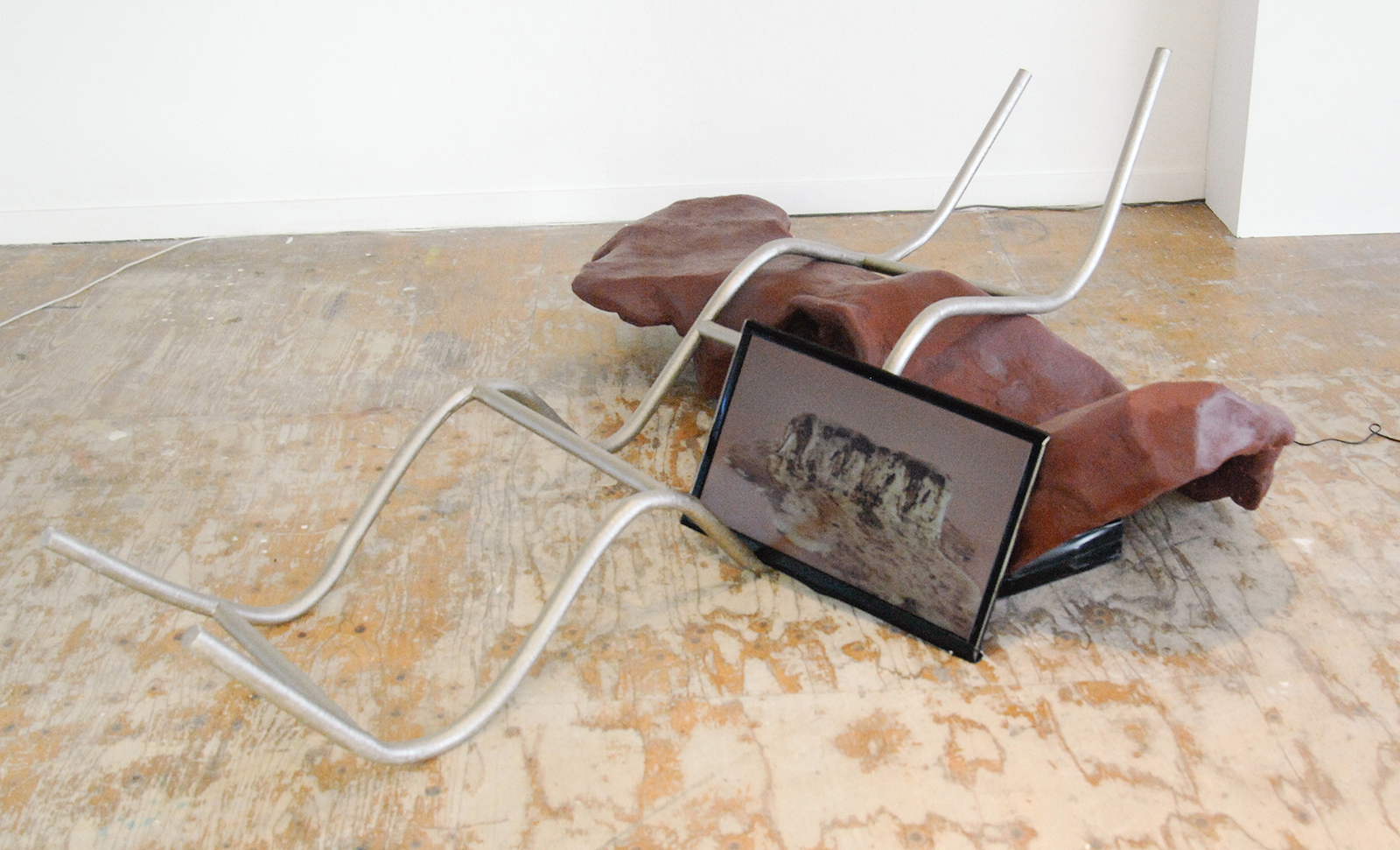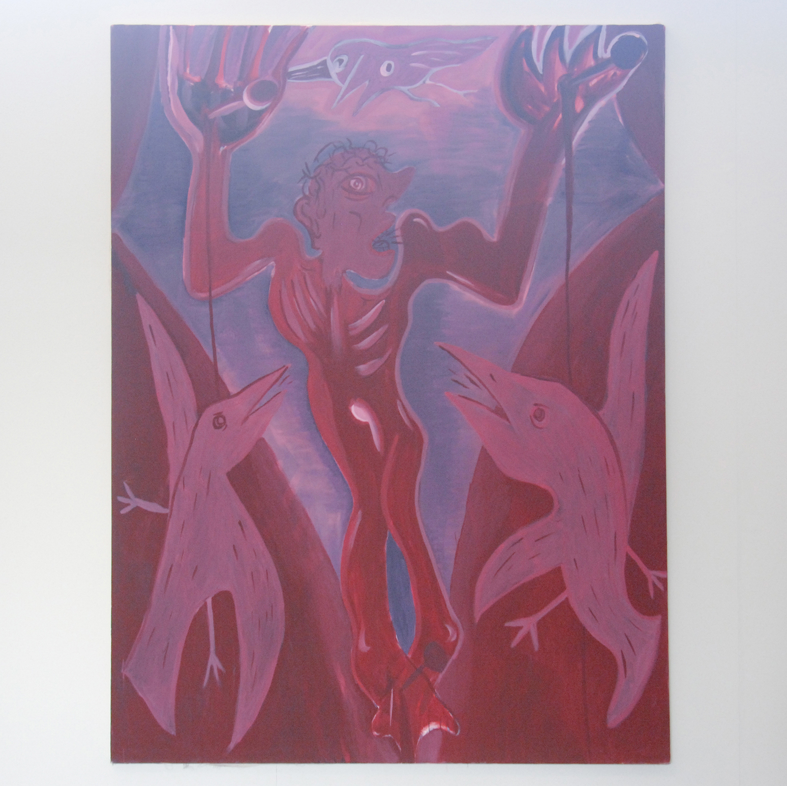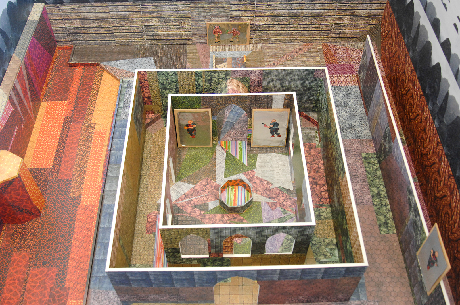 Bjorn Barendse toont een bizarre kleine installatie met schilderelementen. Ook daar blijft op foto bar weinig van over.