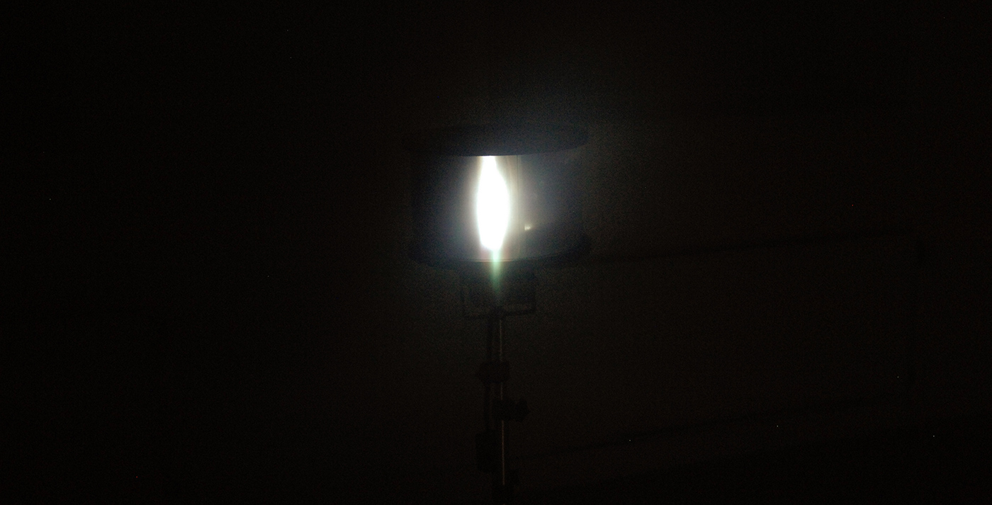 Nika Schmitt maakt het lastig dit jaar met meerdere werken die eigenlijk niet te fotograferen zijn, hier een installatie waarbij een machine heel snel de zonnewering naar beneden laat of juist weer omhoog laat schieten.