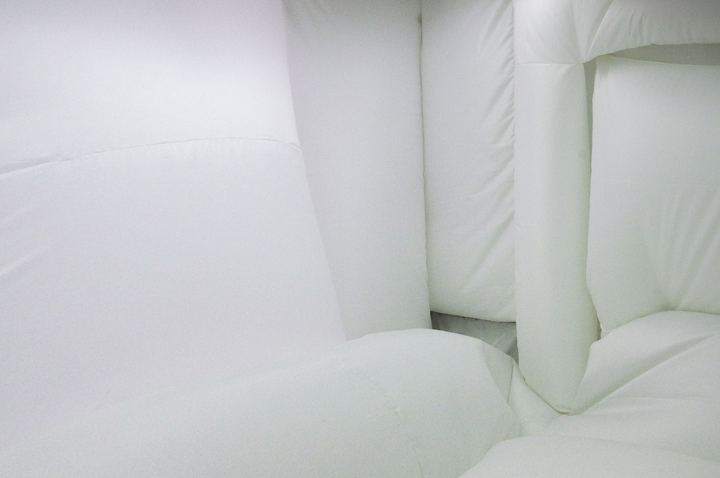 En weer elders op de academie tref je een ruimte die deze gevuld is met luchtzakken die zich opblazen naargelang het aantal mensen in de ruimte.