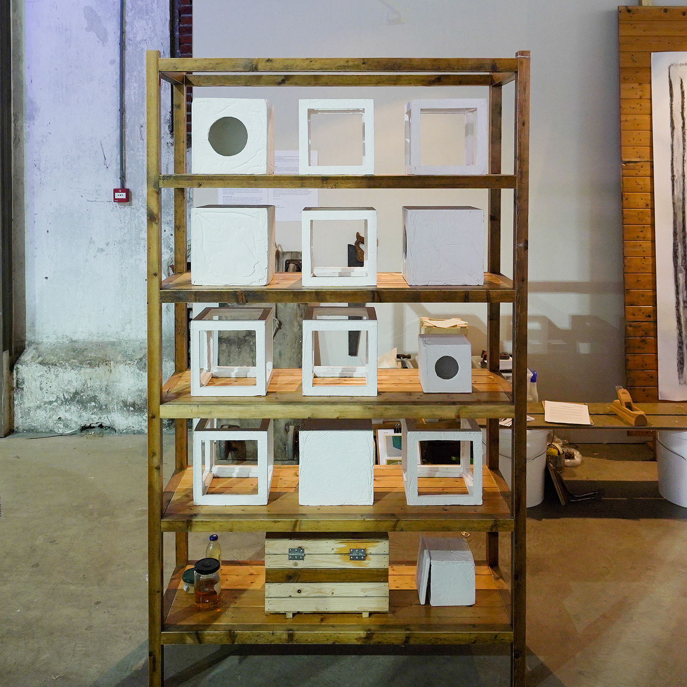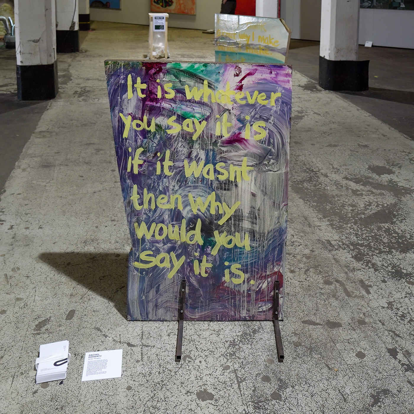 Toegeven, het helpt absoluut niet dat ze de autonome afdeling in de kelder hebben gepropt en de design op kleine tafeltjes op de hoge verdieping erboven. Het doet beiden absoluut geen recht. De ene heeft de ruimte niet nodig en maakt het een nogal lullige presentatie terwijl de ander het duidelijk wel kon gebruiken en juist beperkt wordt door het gebrek hoogte. Maar goed, dat is iets wat ze bij de academie intern maar eens goed moeten bespreken.