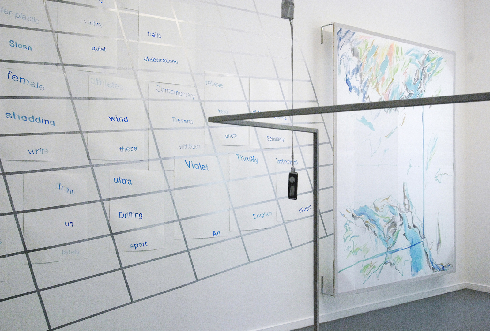Micha Zweifel – I know you hate the talk, And even more the personal addres, Proximity is not what you strive for; it’s rather something like mutual disagreement, We both know that the romantic idyll is an idea of the past, pi – Mixed media insallatie