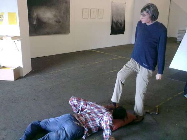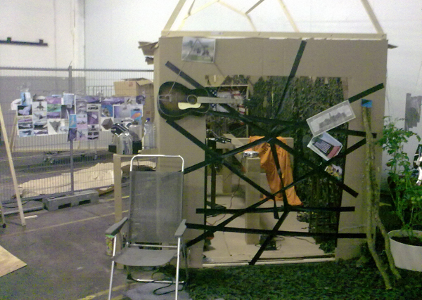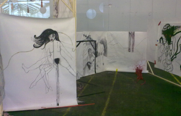 ‘De eindexpositie van de Willem de Kooning academie te Rotterdam vindt dit jaar plaats in de zogenaamde Fenixloodsen op Kop van Zuid. (Geen idee hoe voorgaande jaren georganiseerd waren overigens.) Achterin de enorme loods, helemaal gevuld met opzetmuurtjes en werk van studenten, bevond zich de beeldende-kunstafdeling. Ik schrok een beetje, het (hopelijk toch wel) harde werk van de studenten viel volkomen weg in de robuuste loods, vooral bij beeldend viel dit erg op aangezien het werk niet meer goed te bekijken was door al de afleiding die de loods en de slechte presentatie met zich meenamen. Die paar witte opzetmuurtjes konden het helaas niet meer goedmaken.