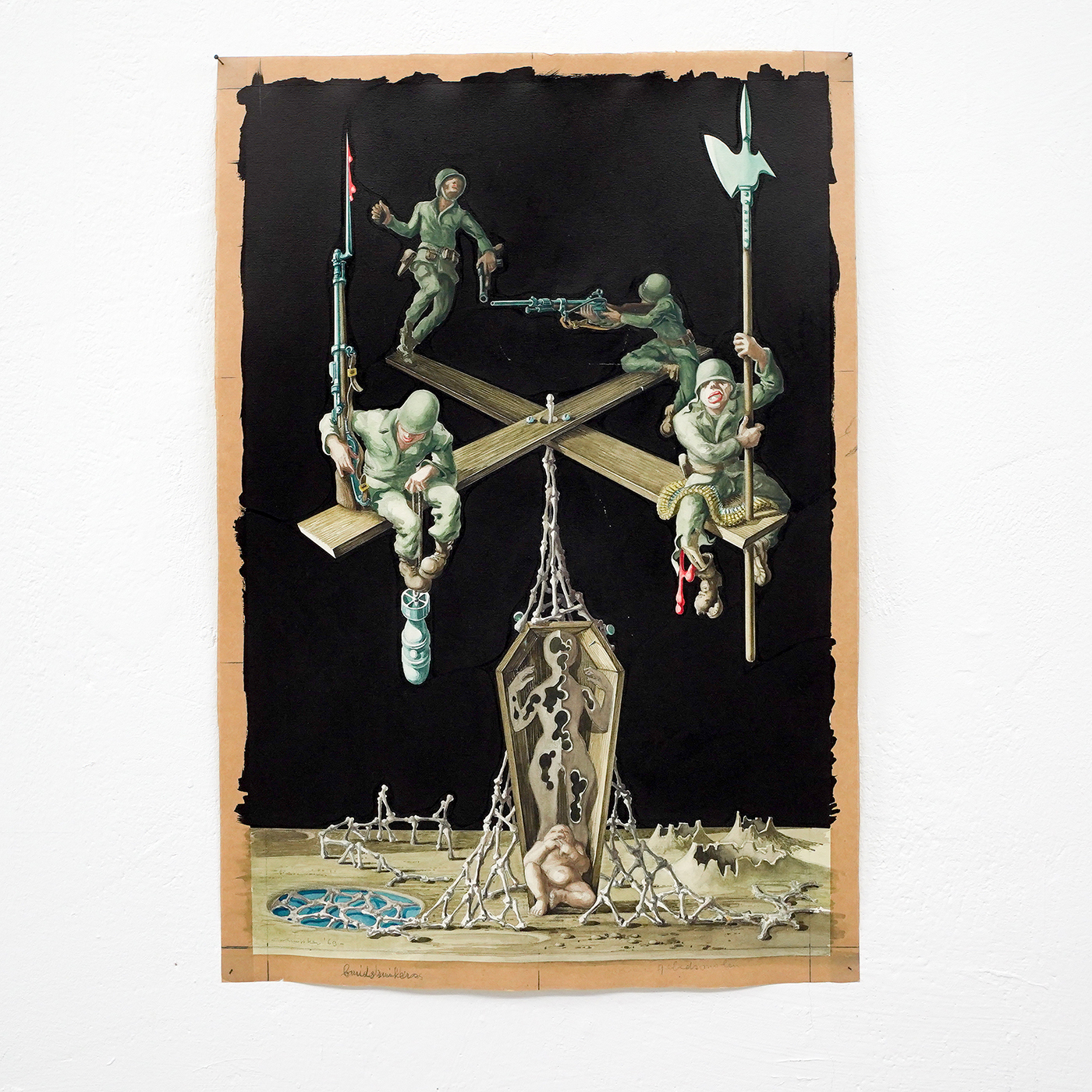 Ab Knupker – Bruidsuiker, Gebedsmolen – 58x38cm Gouache op papier