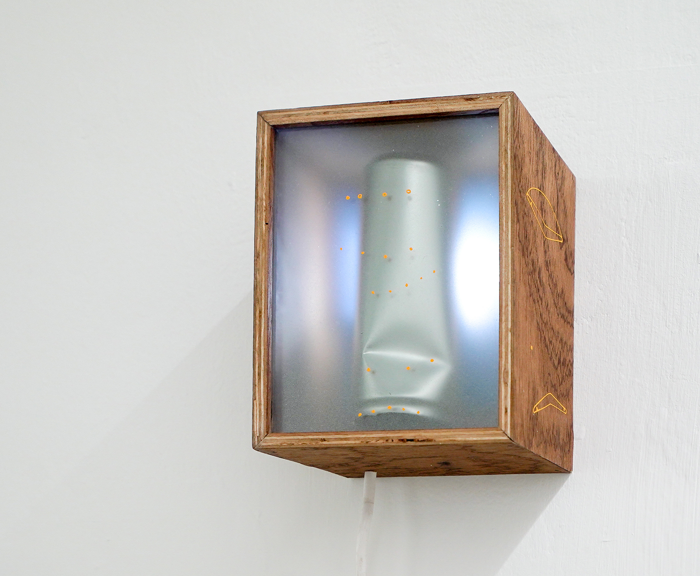 Lennart de Neef – OOPART 031 – 18x15x11cm Hout, glas, vinyl en LEDobject