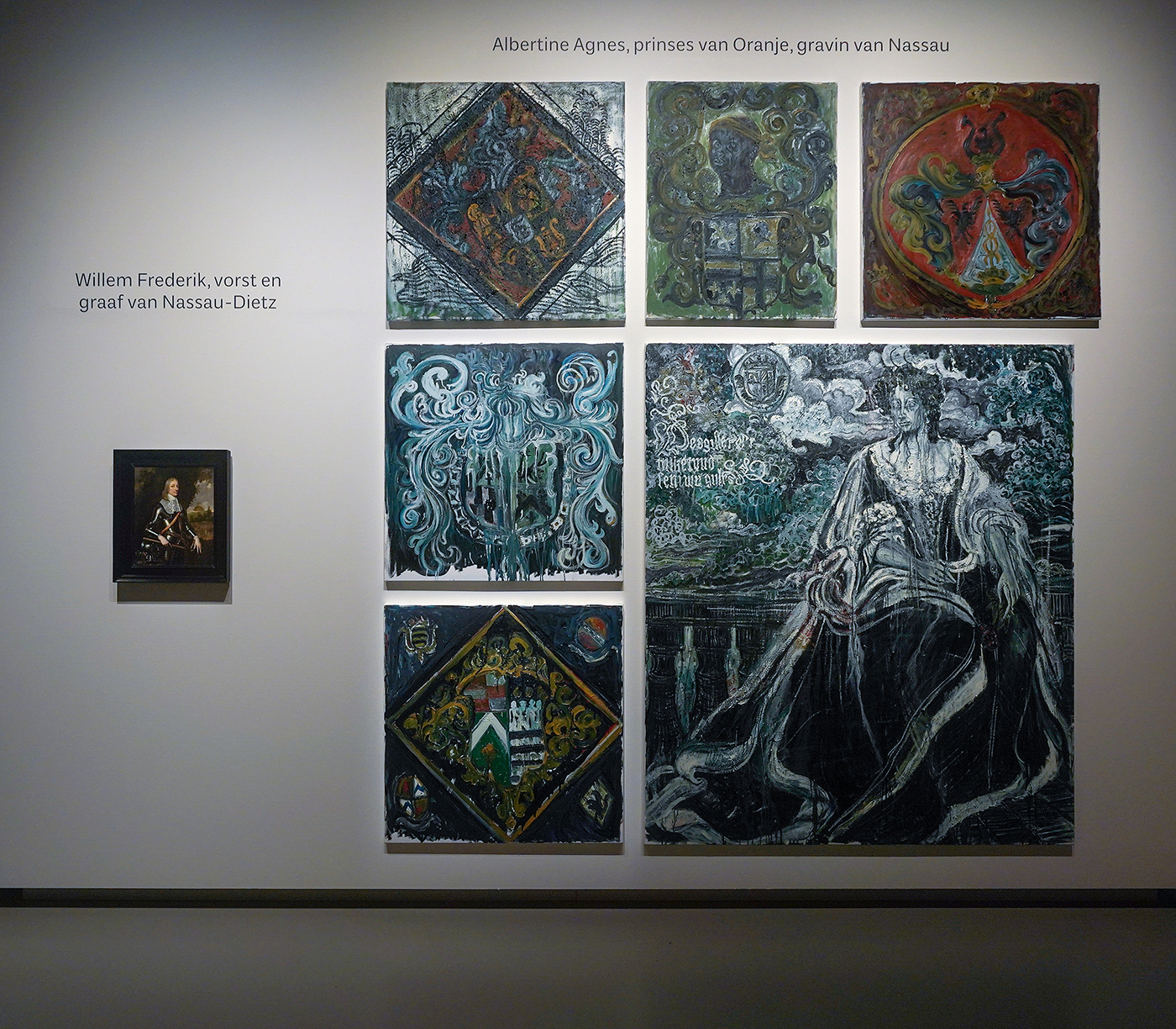 Pieter Nason – Willem Frederik, vorst en graaf van Nassau-Dietz – Olieverf op doek, omstreeks 1660-1670 & Natasja Kensmil – Albertine Agnes, prinses van Oranje, gravin van Nassau – Olieverf op doek, 2021