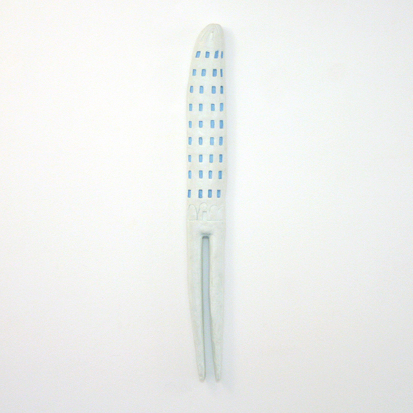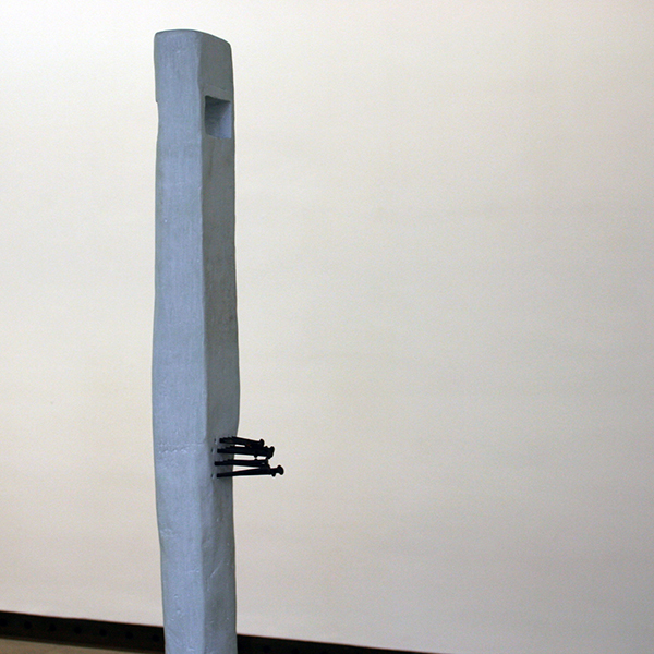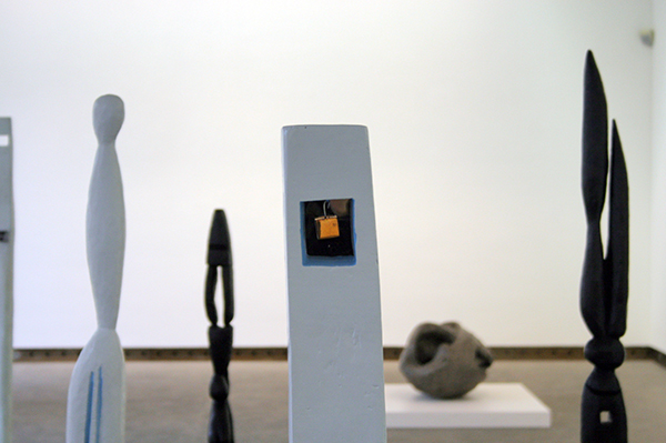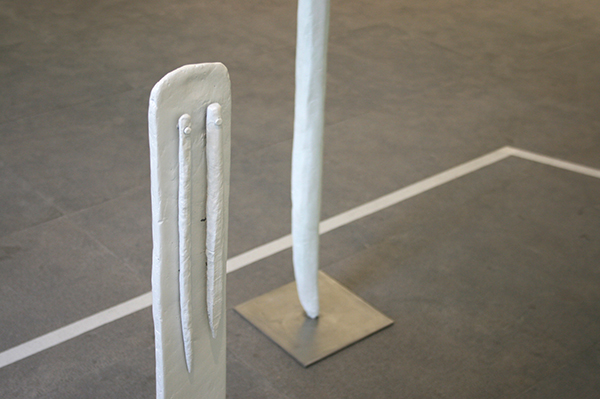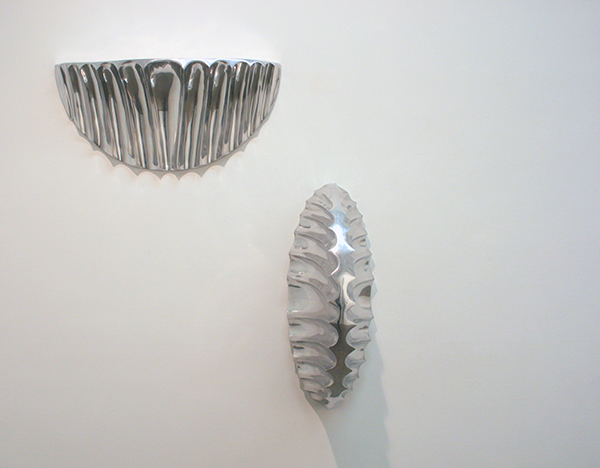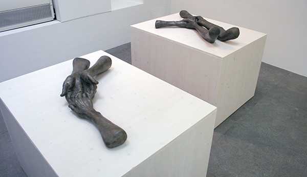 Hier zijn totems te zien. Het zijn sculpturen met een specifieke beeldtaal en precisie die ik niet direct kan thuisbrengen. Maar ook een sculptuur van een vorm die in een vorm grijpt, de titel ‘inner-ear’ verklapt de herkomst maar in feite functioneert het ook uitstekend zonder die context. Ook de aluminium wandobjecten doen fris en sterk aan, ook hier is het therapeutische ver te zoeken. Zo blijkt het werk van Bourgeois ineens een stuk spannender uit te zien dan die beelden die je normaal overal ziet. Deze beelden zijn misschien nog altijd in zekere zin inwisselbaar maar getuigen wel van een autonomie en beeldende kwaliteit die ik haar niet veel eerder zou toeschrijven.