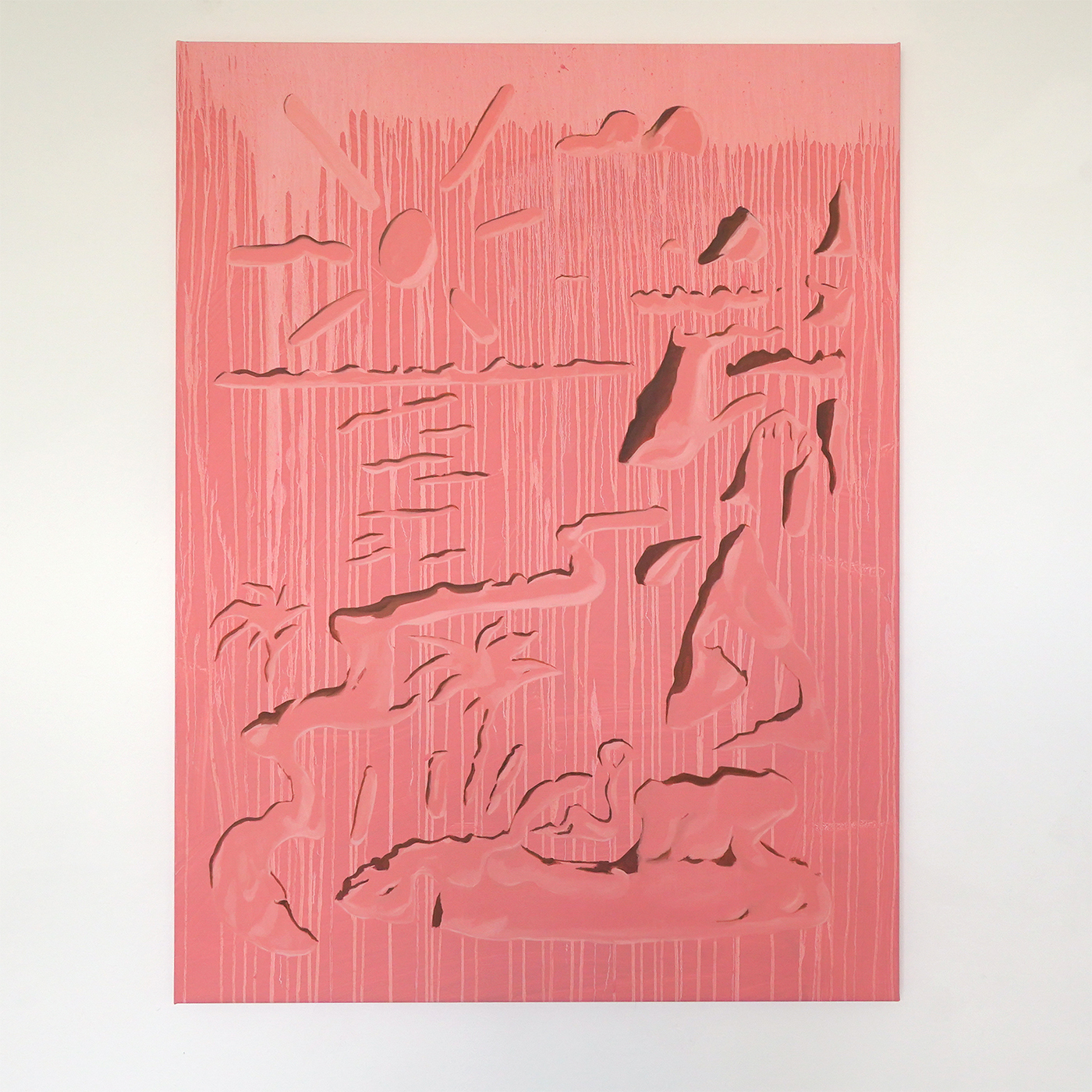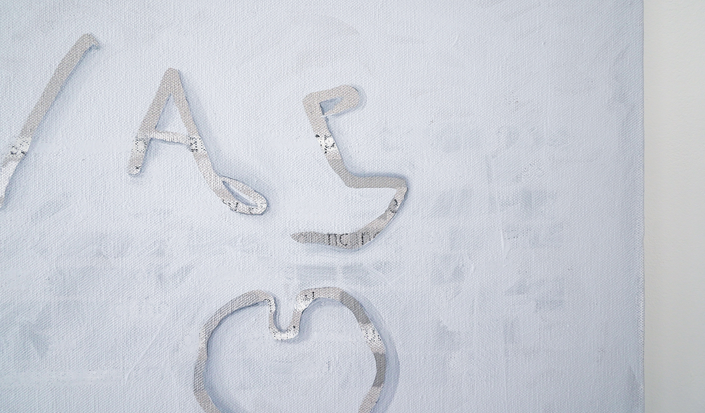 Henry Byrne – Angus was here (Appropriated painting of Angus Liao) – 91x137cm Vinylletters, acrylverf en olieverf op linnen (detail)