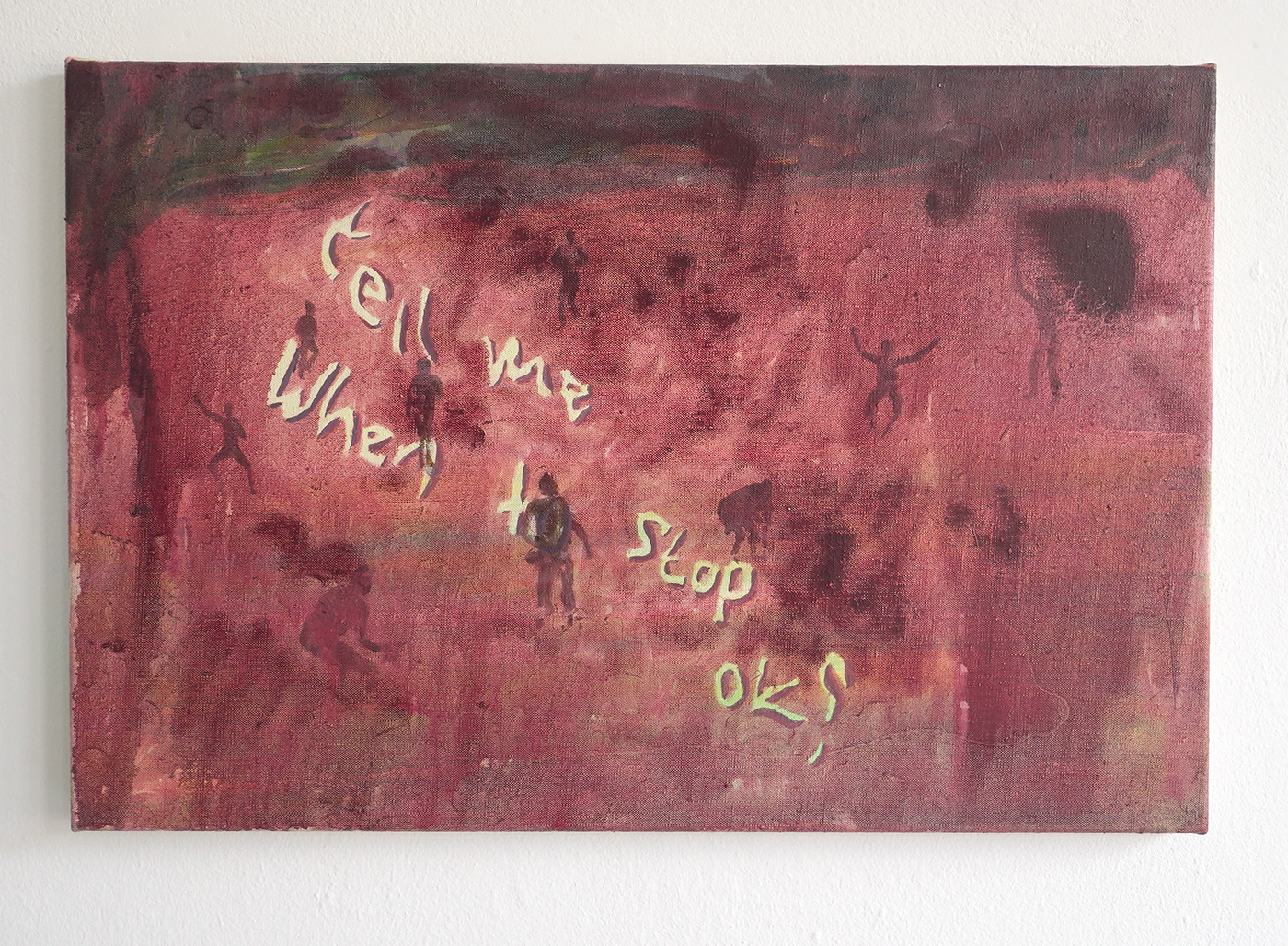 Henry Byrne – Tell me when to stop OK? (Appropriated painting of Jacco Olivier) – 40x60cm Acrylverf en olieverf op linnen