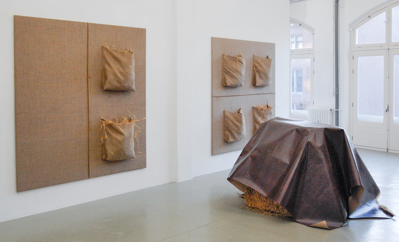 Klaas Kloosterboer – 16167 & 16164 – 205x205cm Jute en stro & 16169 – 110x230x200cm Lak op linnen en strobalen