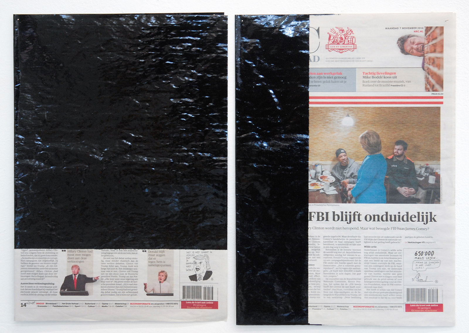 Klaas Kloosterboer – 16168(1) Percentage covered, horizontal and vertical – Elk 30x42cm Lakverf op krantenpapier, twee delen, editie van 11