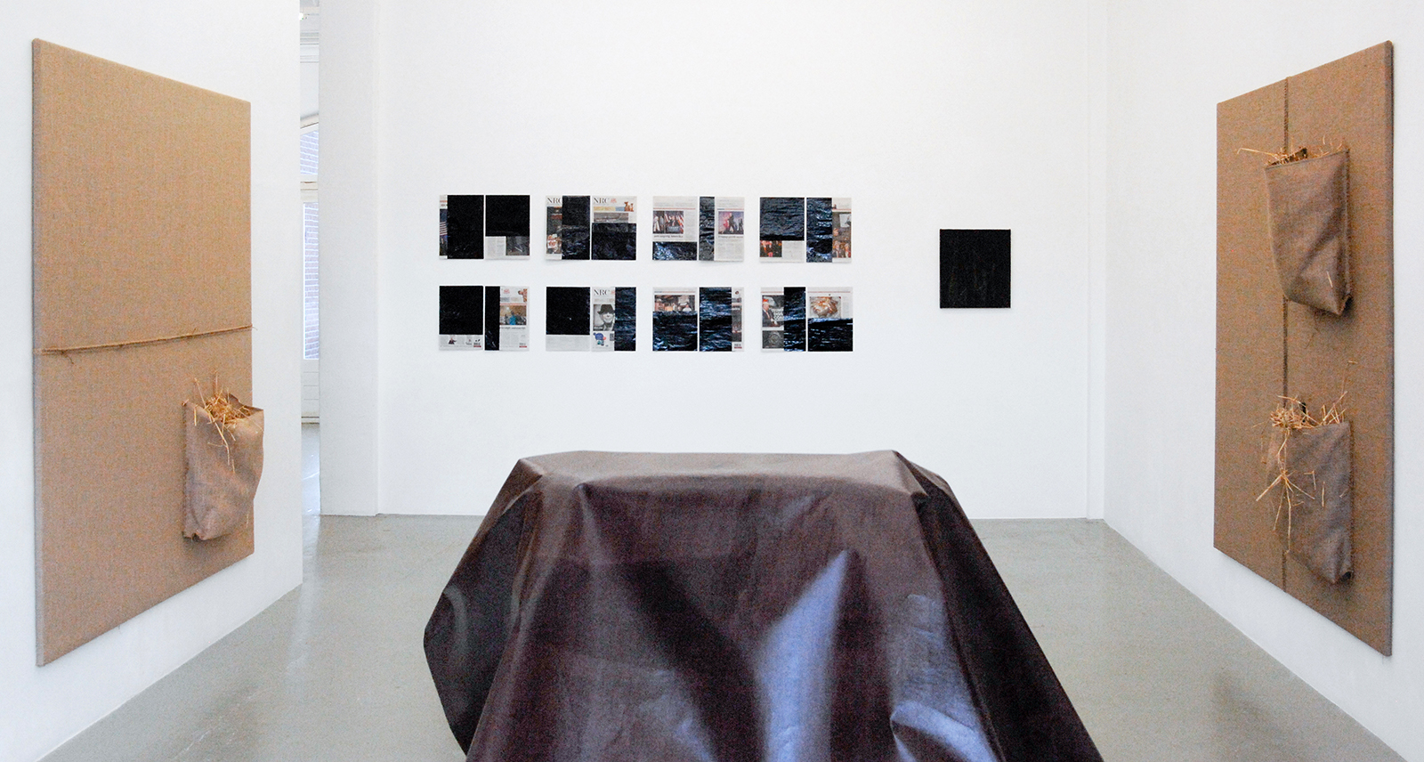Het werk van Klaas Kloosterboer (1959) zal dat uiteindelijk misschien ook wel doen. Maar tot dusver is het toch vooral werk dat eerder een soort rekwisiet lijkt te zijn. De werken acteren, of beter gezegd, laten iets acteren dat buiten henzelf ligt. Het is verleidelijk de werken te zien als schilderijen omdat ze toevallig aan de muur hangen. Of een sculptuur omdat het toevallig ruimtelijk is. Het ruimtelijke werk is nog het meeste een schilderij van alle werken, het is verf op linnen vervormd door de strobalen die er onder liggen.