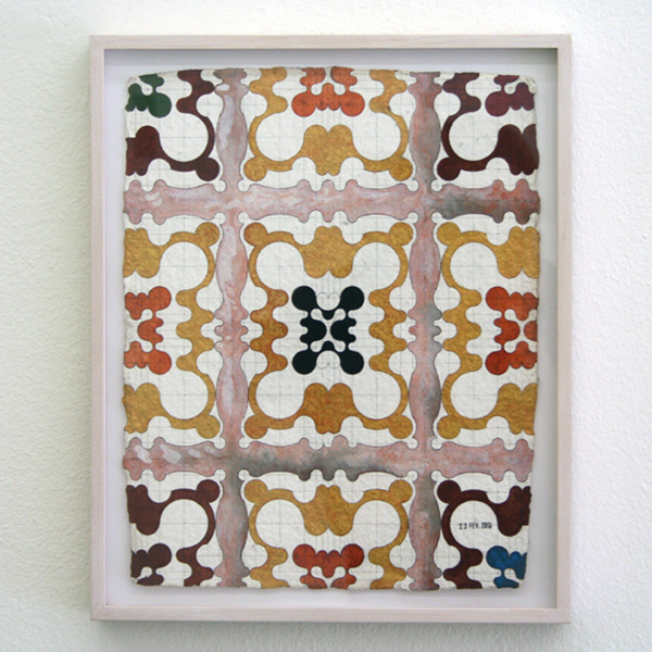 Henri Jacobs – 499, 28 sept 2010, Weaving & tree leaf writing – 25x32cm Aquarel op Moulin de Larroque papier