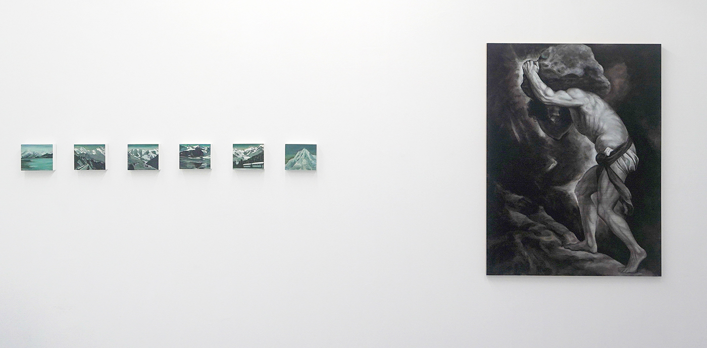 Anne van As – Diverse kleine werken, gemengde techniek op MDF & Niek Hendrix – The Vessel (Sisyphus) – 90x68cm Olieverf op paneel