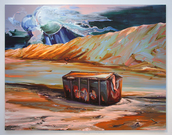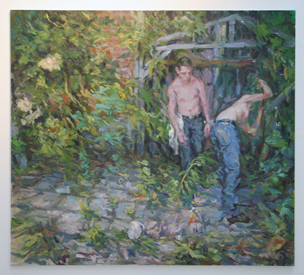Gelukkig is dat op dit moment bij Galerie Witteveen totaal niet aan de orde. De insteek is simpel, Frans Franciscus selecteerde een lijst met schilders die hij om diverse redenen goed vind. Het heeft absoluut niet de ambitie om een overzicht te bieden maar meer een persoonlijke visie op die schilderkunst. Die visie laat vooral zien dat schilderen groots mag zijn; veel grote formaten. Daarnaast veel is er veel schilderkunstig effecten; felle kleuren, dikke klodders verf en sensationele onderwerpen. Je zou het kunnen afdoen als banaal gekwastel. Al zou je daarmee de serieuze intenties van de schilders totaal over het hoofd zien.