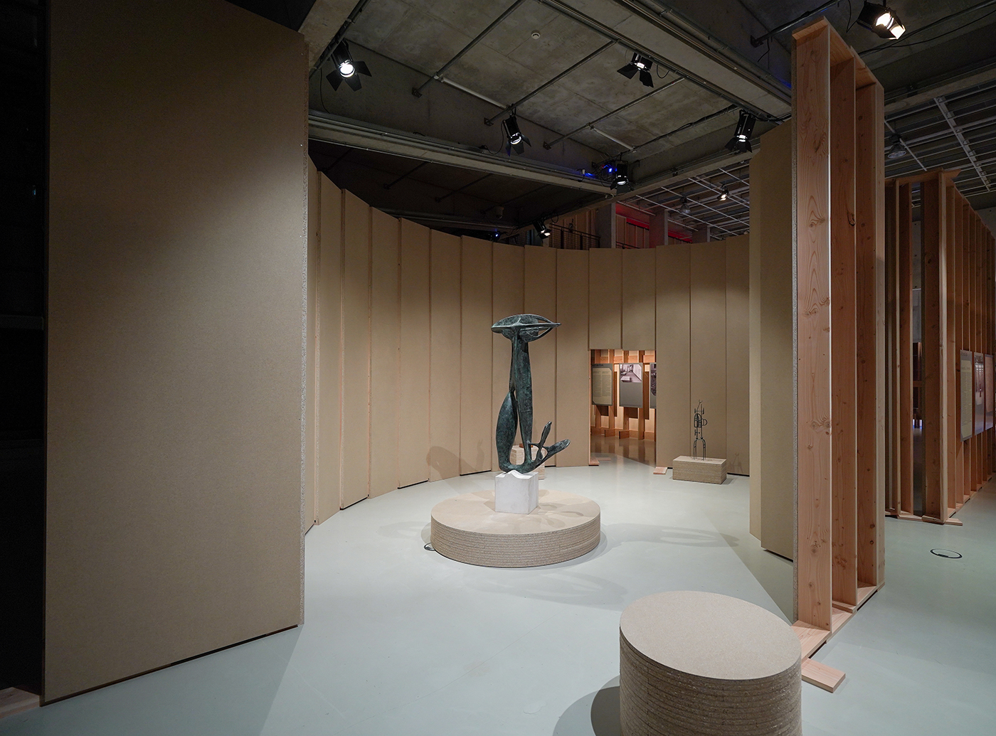 Zo opende in 1942 de galerie The Art of The Century van Peggy Guggenheim in New York, met een architectuur van bruine bogen en een laag plafond. Zeg maar gerust een enorm dominant aanwezige architectuur.