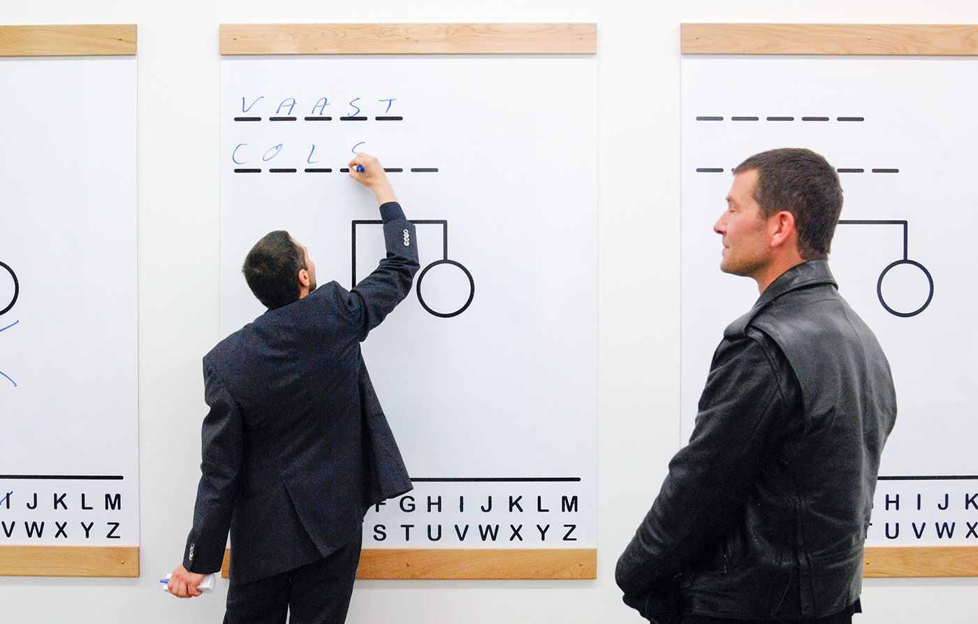 Met bonuspunten voor de galeriehouder van Trampoline die als een bezetene de hele dag galgje speelde met bezoekers. Raden van wie het werk was, was ondanks het ontbreken van titelbordjes volstrekt overbodig…