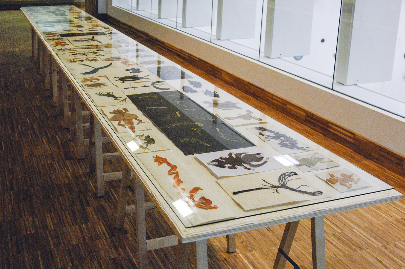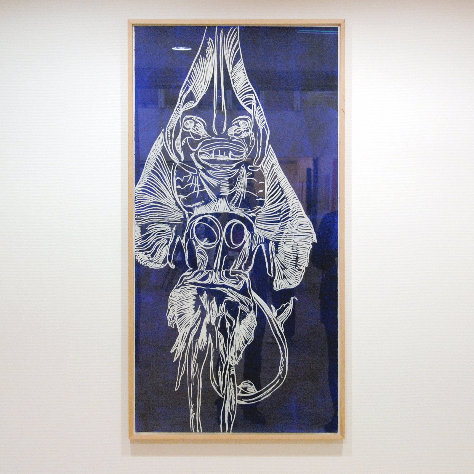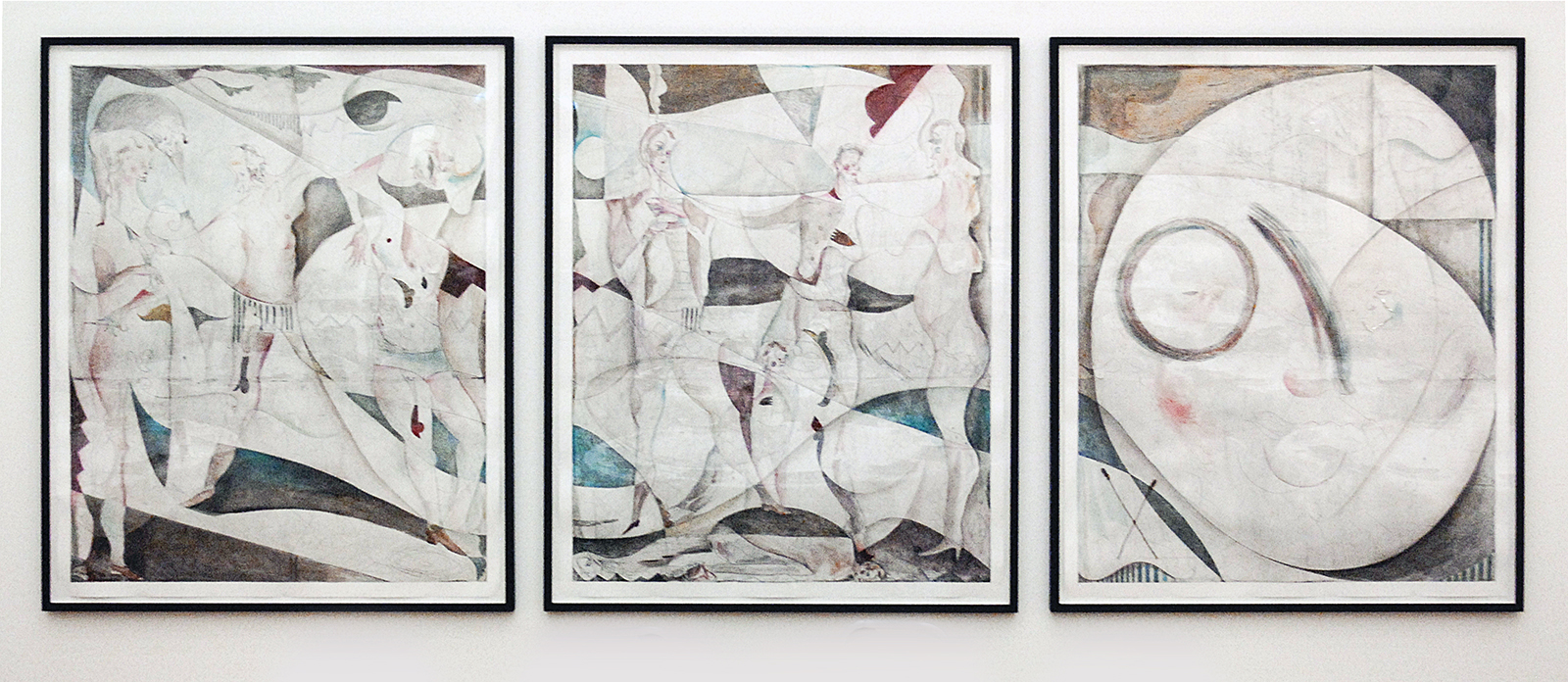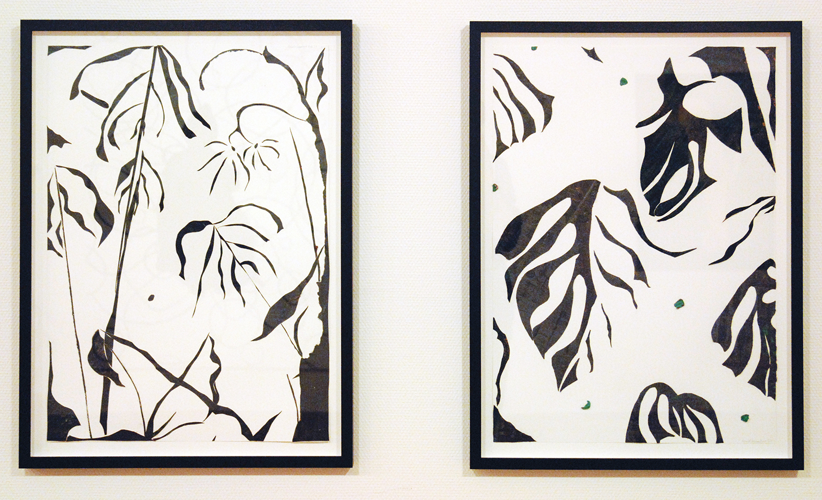 Tessa Chaplin – Zonder Titel – 253x300cm Olieverf op papier & Erik Andriesse – Irissen – 63x90cm Ingekleurde ets op papier