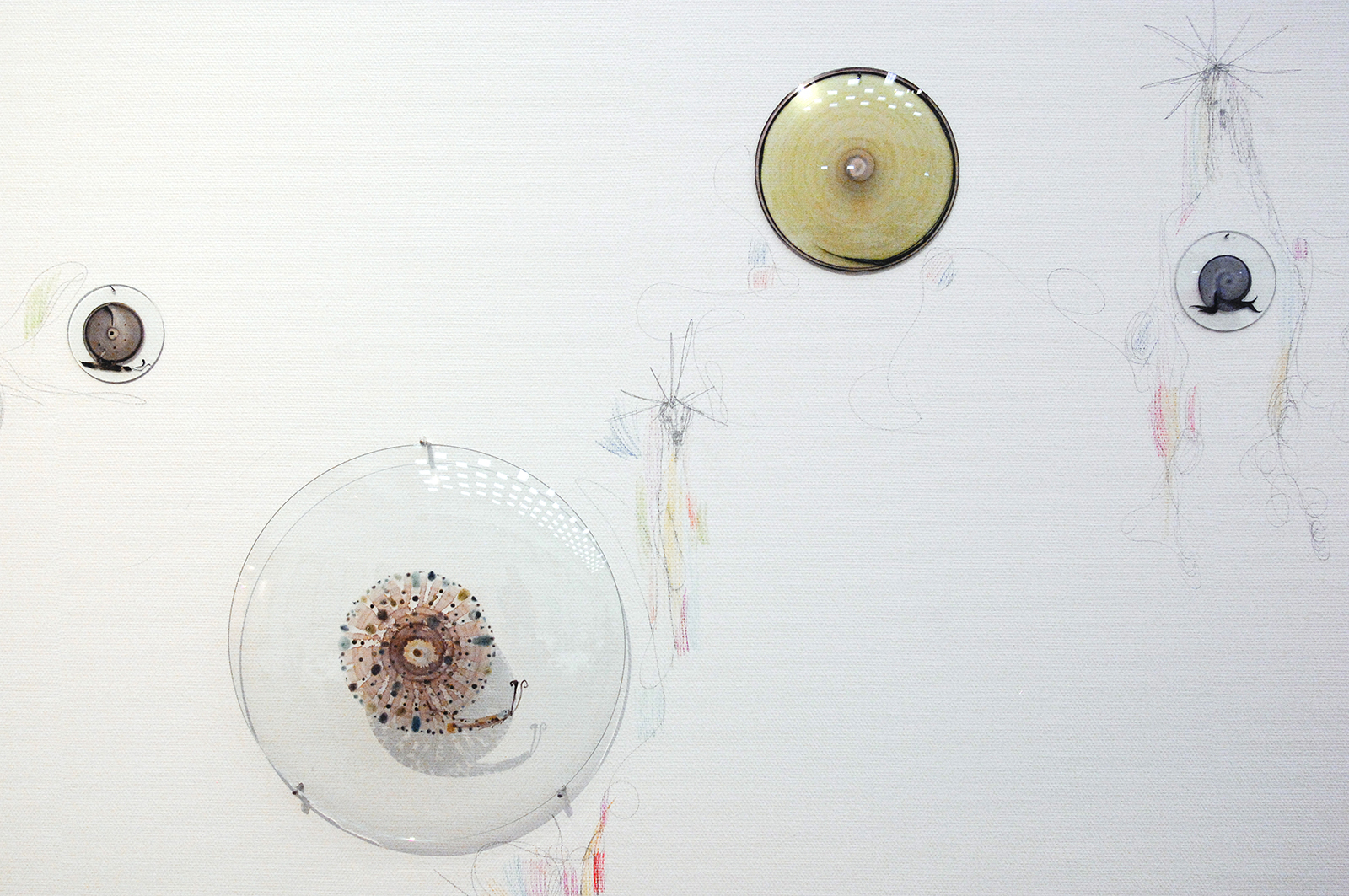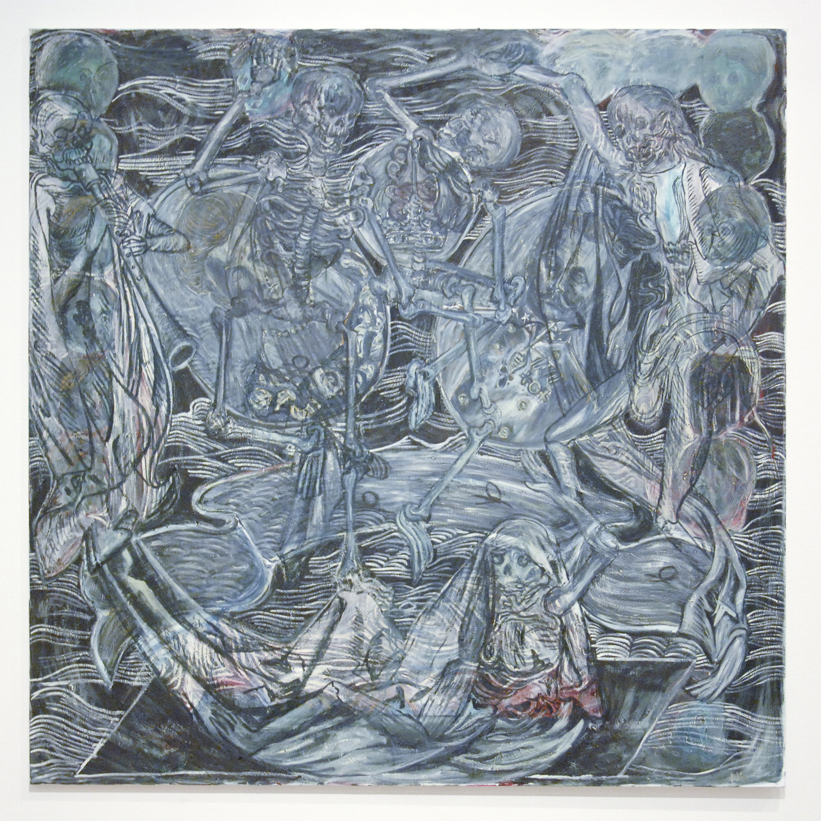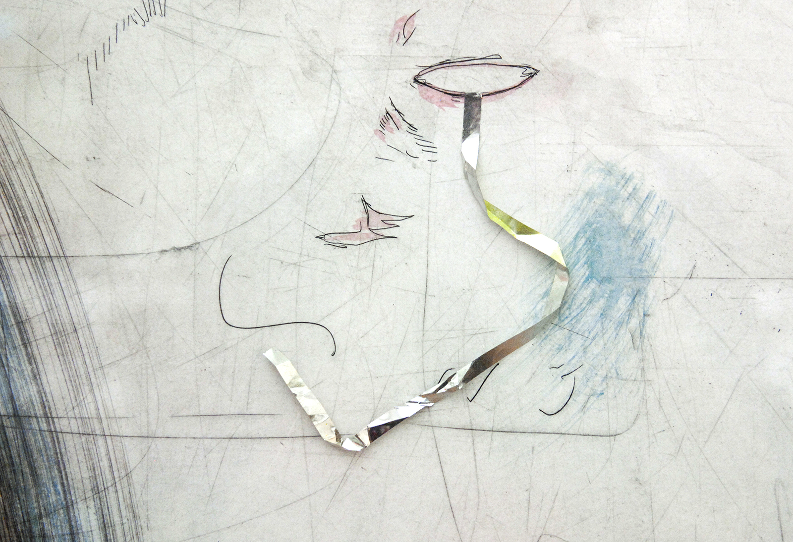 Tessa Chaplin – Zonder Titel – 253x300cm Olieverf op papier & Erik Andriesse – Irissen – 63x90cm Ingekleurde ets op papier