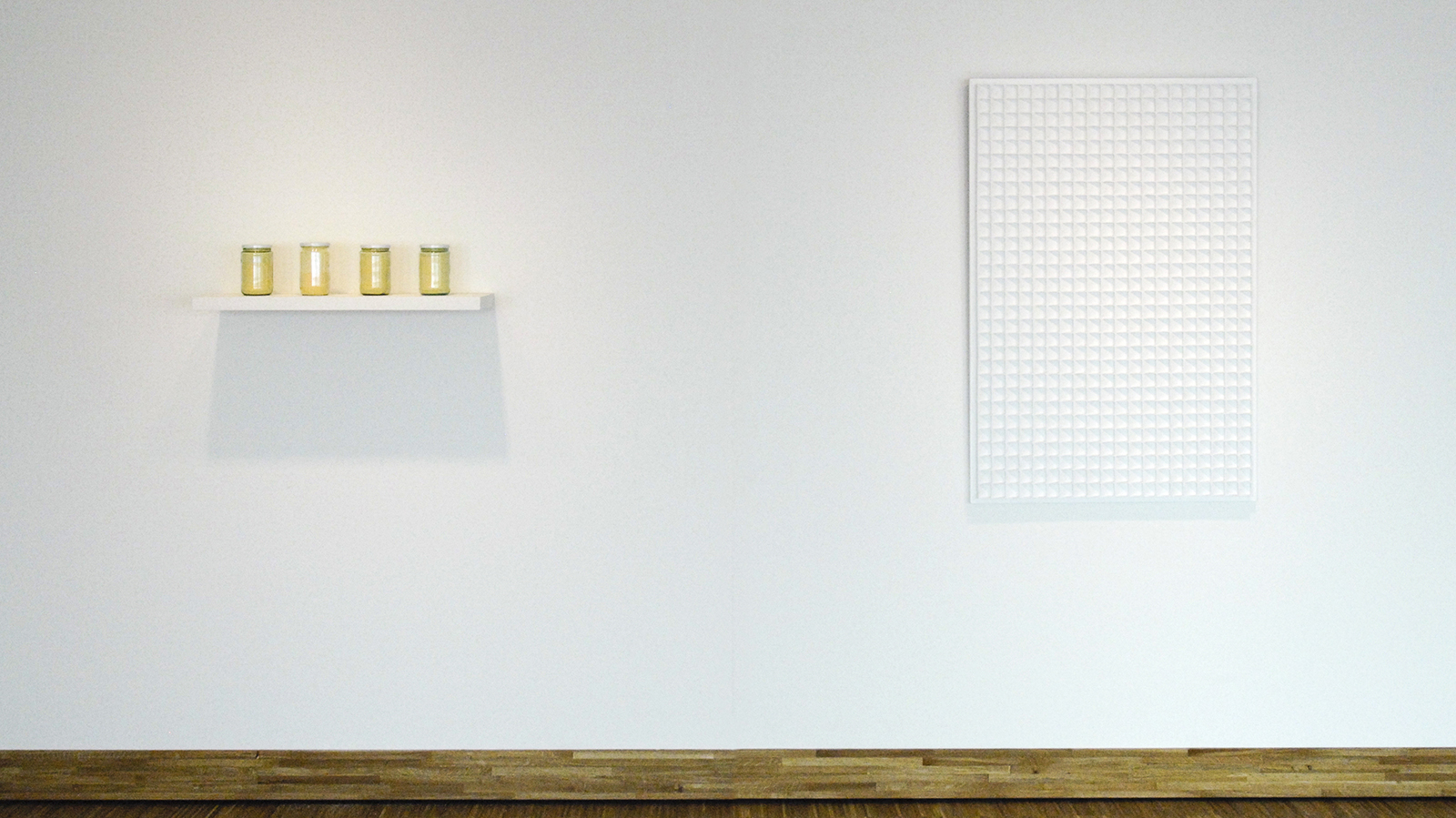 Wolfgang Laib – Blutenstaub von Kiefern – Stuifmeel van de grove den & Jan Schoonhoven – Relief 70-38 – Papiermache en witte latex