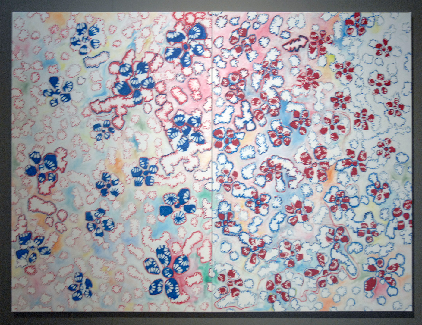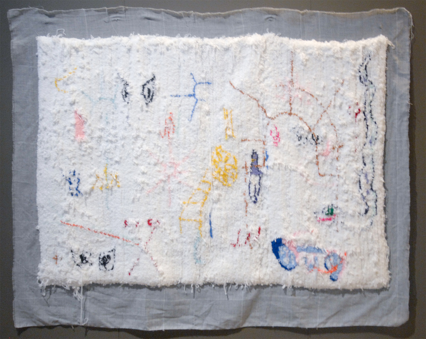 Wouter Paijmans – Logo – 150x200cm Polyester textiel, zijde, draad, punaise en lakverf