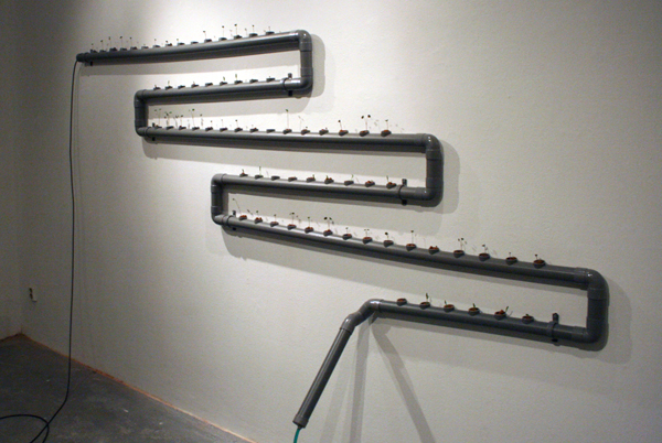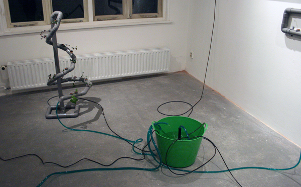 Aansluitend op het engagement van Philips toont Menno Hiele een utopie van mens in de relatie met natuur. Hij toont drie sculpturen, 3 ideale planten voor binnen. Als beeld werkt het naar mijn inzien nog niet geheel maar inhoudelijk is het erg sterk. Het idee de ideale plant te kweken doet denken aan Koen Vanmechelen zijn kippen, maar dan andersom.