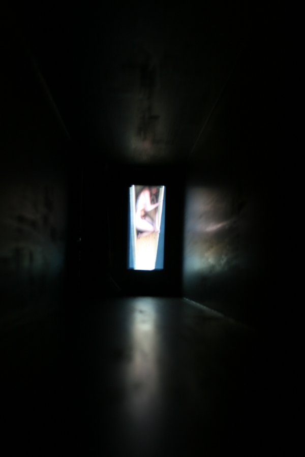 Voor het werk dat hij in deze expositie liet zien, liet hij zich inspireren door de iconografie van de zeventiende eeuwse schilderkunst, waarin een dood jong hertje of een geschoten haas vaak symbool stonden voor de dood en vergankelijkheid . De latex beelden die in twee ruimtes hangen zijn bevestigd aan een pompsysteem, dat bij het binnenkomen van een van de ruimtes in werking wordt gezet, waardoor de beelden opgeblazen worden. De bedoeling was dat de beelden die eerst helemaal slap hingen (zie foto’s) opgepompt zouden worden tot het oorspronkelijke beeld (een hertje en haas) en hierna door de druk zouden ontploffen en een wit poeder door de hele zaal zouden verspreiden. Helaas waren de pompen stuk gegaan en heb ik het niet met eigen ogen mogen ervaren, maar Tommy vertelt dat het wel echt werkte en dat hij het al had uitgeprobeerd. Hij ging de pompen maken, en ik hoop dat ik komende week nog even tijd heb om de latex dieren opgeblazen te zien worden.