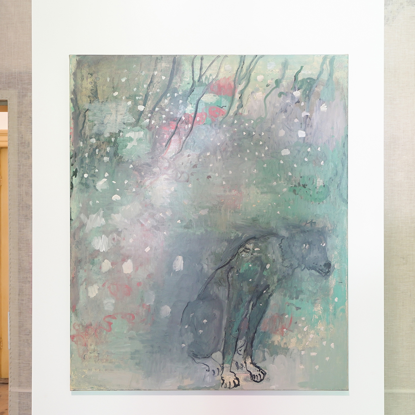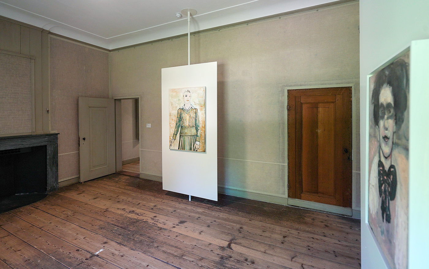 Daar komt dan de locatie nog eens mooi bij. Want het Landhuis is, ook al is het echt een landhuis, heeft ook een zelfde menselijkheid. Geen gigantische museale zalen maar kamers gemaakt voor mensen, met deuren, ramen en een open haard. De muren die bedekt zijn met een doek, laten toch zo de door de tand des tijds hun achtergrond zien, zoals dat ook weer in de werken van Van Bart gebeurt. Sommige kamers lijken een gele ondertoon te hebben, andere juist weer een roze of een grijze. Het werkt prachtig mee met de schilderijen die daarom nog menselijker worden dan ze al waren. En zeker meer passend dan ze in de traditionele white cube zouden zijn.