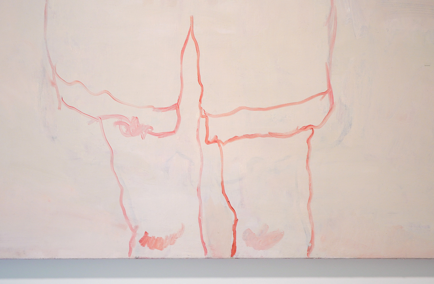 Het werk van Hannah van Bart is in Nederland slechts spaarzaam zichtbaar geweest het afgelopen decennium. Ik ken het werk hoofdzakelijk via reproducties op het web en dan met name de portretten. Aantrekkelijk zijn de figuren meestal niet, al is onaantrekkelijk weer het andere uiterste. Vlotte penseelstreken worden afgewisseld met weerbarstige fragmenten waar in gepoetst of overschilderd is. Onmiskenbaar werk, maar toch krijg ik er de vinger niet helemaal achter. Het werk is te schilderkunstig dat de portretten in de traditionele zin toe doen, daar tegenover de portretten zijn te veel een karakter om bij voorbaat weg te wuiven als irrelevant. Het zijn wel echt mensen, al herken ik ze niet.