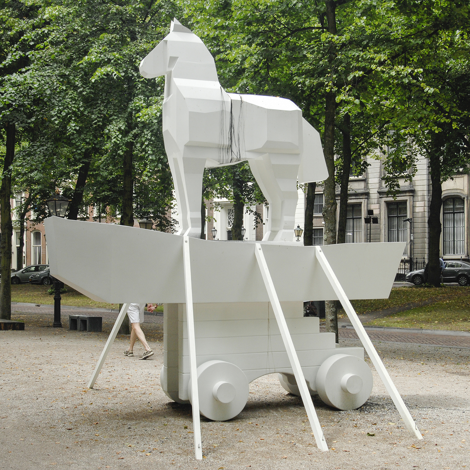 Een tijdelijke rij van een stuk of 20 sculpturen in de openbare ruimte, namelijk het Lange Voorhout te Den Haag. De link die ze met elkaar delen is dat ze hoofdzakelijk van een redelijk formaat zijn en van “jongere” Franse kunstenaars? Waarom staan die kunstwerken hier? Waarom deze werken?