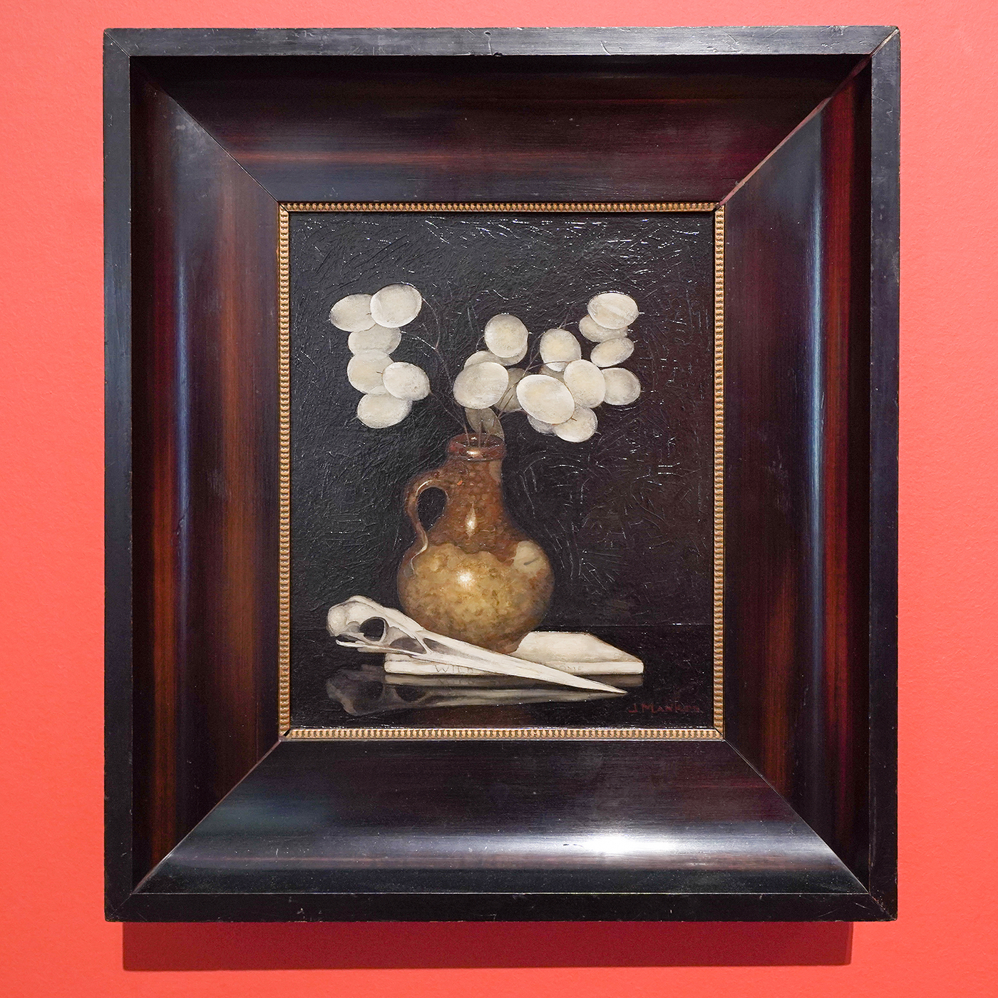 Jan Mankes – Kruikje met Judaspenning, Reigersneb en boekje – Olieverf op doek, 1915