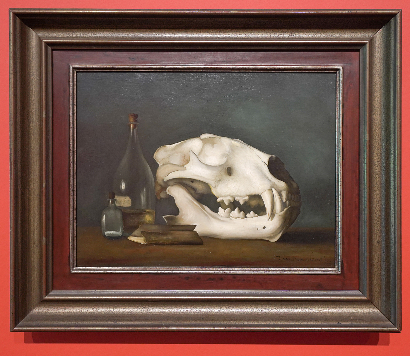 Het enige grote werk in de tentoonstelling is het Stilleven met buffelschedel. Hoewel het naar hedendaagse maatstaven alsnog een bescheiden formaat is, zie je hier hoe Mankes duidelijk minder goed uit de verf wist te komen. De potloodlijnen zijn lomper. Ook het gebrek aan detaillering maakt dat het de sferische werking van kleinere werken niet haalt.